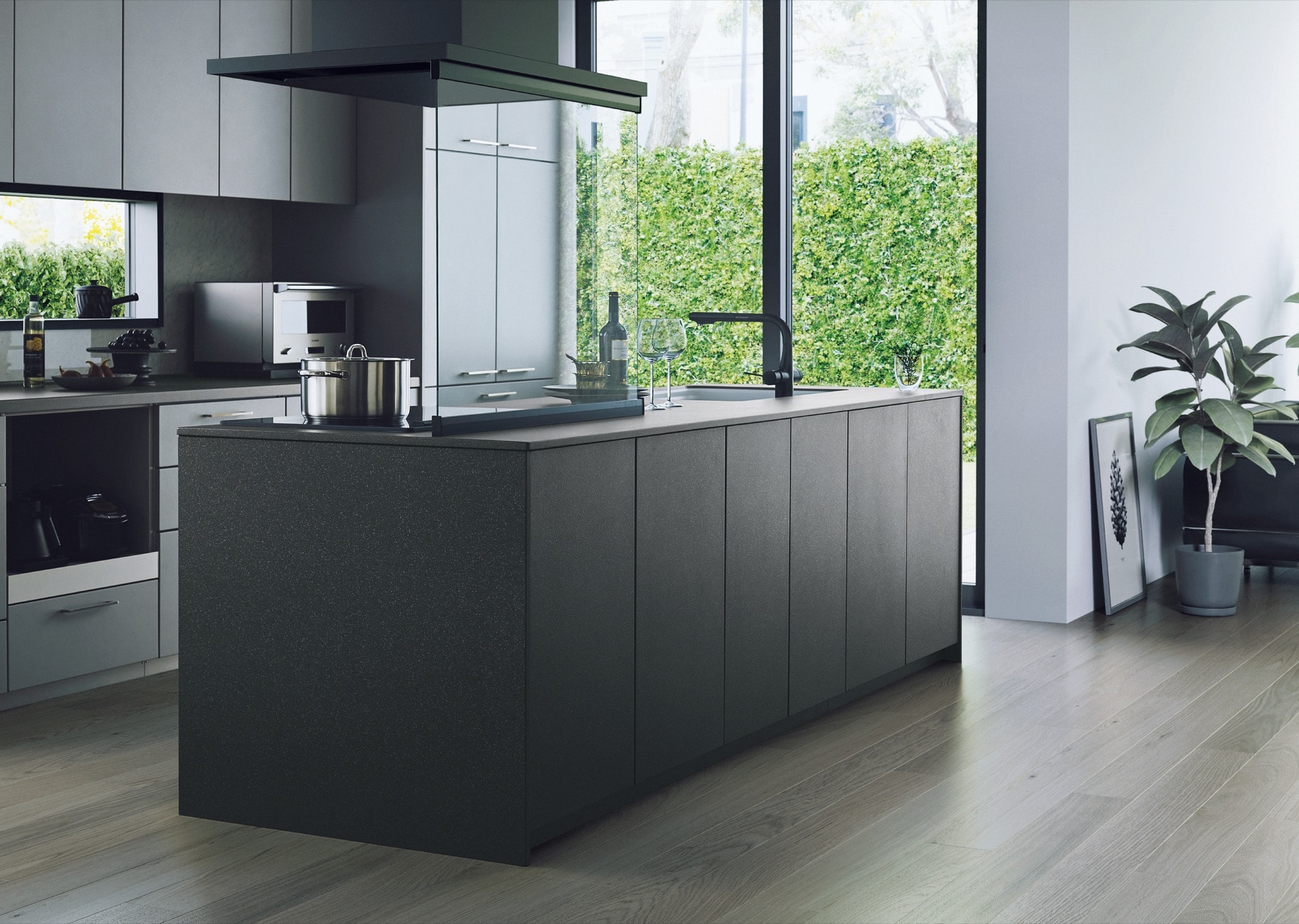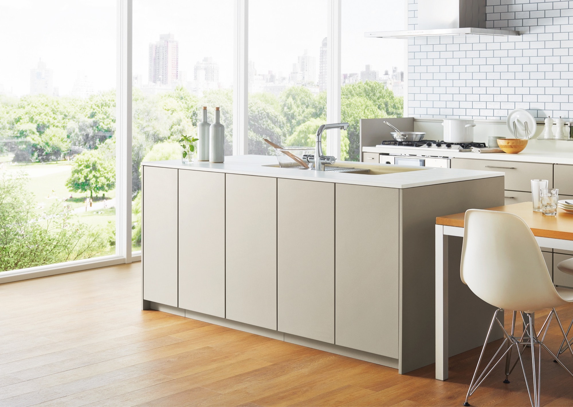 「コラージア」では、カウンターとキッチン扉のデザインを統一できる塗装扉を採用。