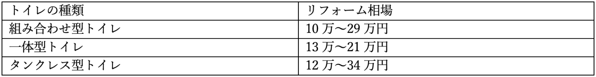リフォームをするトイレの種類別の相場を以下の一覧にまとめました。