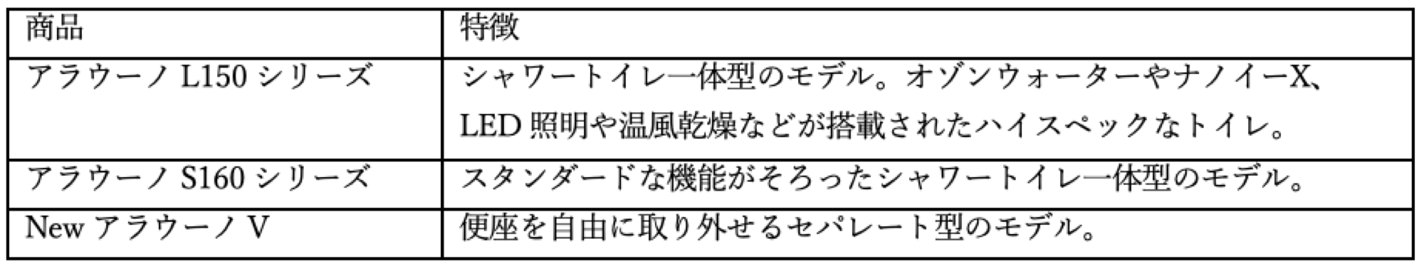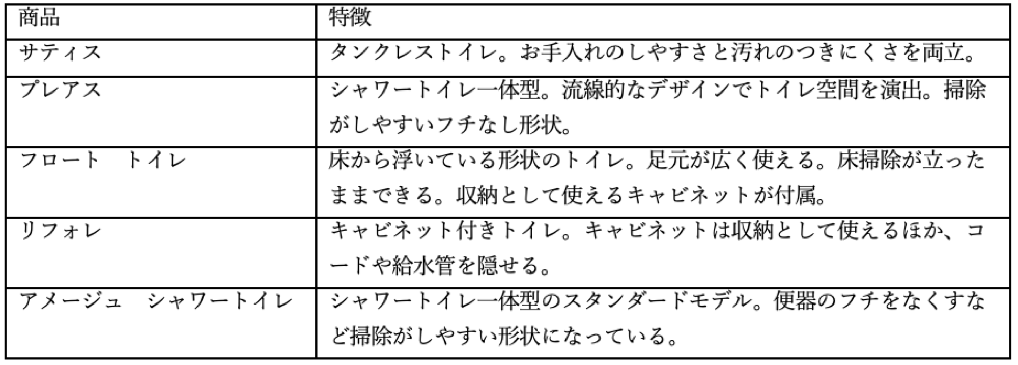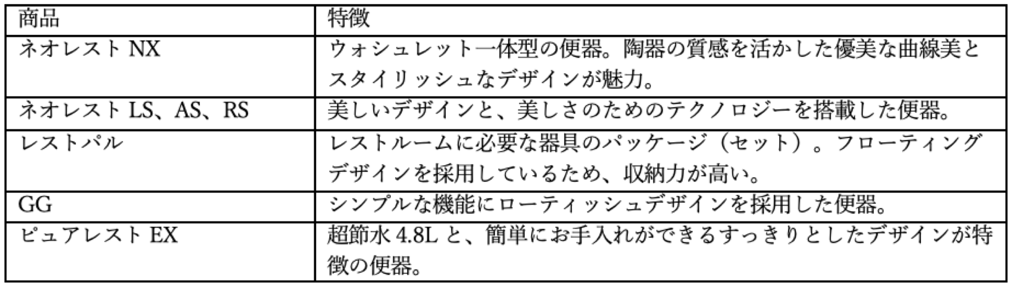 トイレメーカー大手であるTOTOは、ウォッシュレットを開発した会社としても有名です。代表的な商品には以下のものがあります。