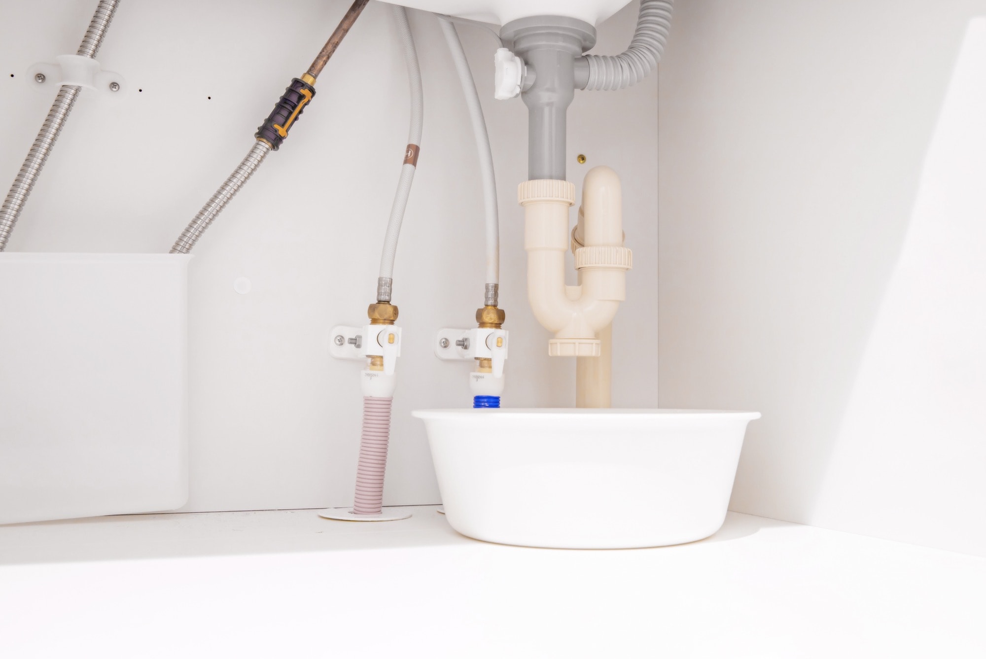 洗面化粧台下の収納部分にある水受けに水が溜まるようになり、2週間に1回は捨てなくてはならないということで、洗面化粧台の取り替えについてご相談がありました。