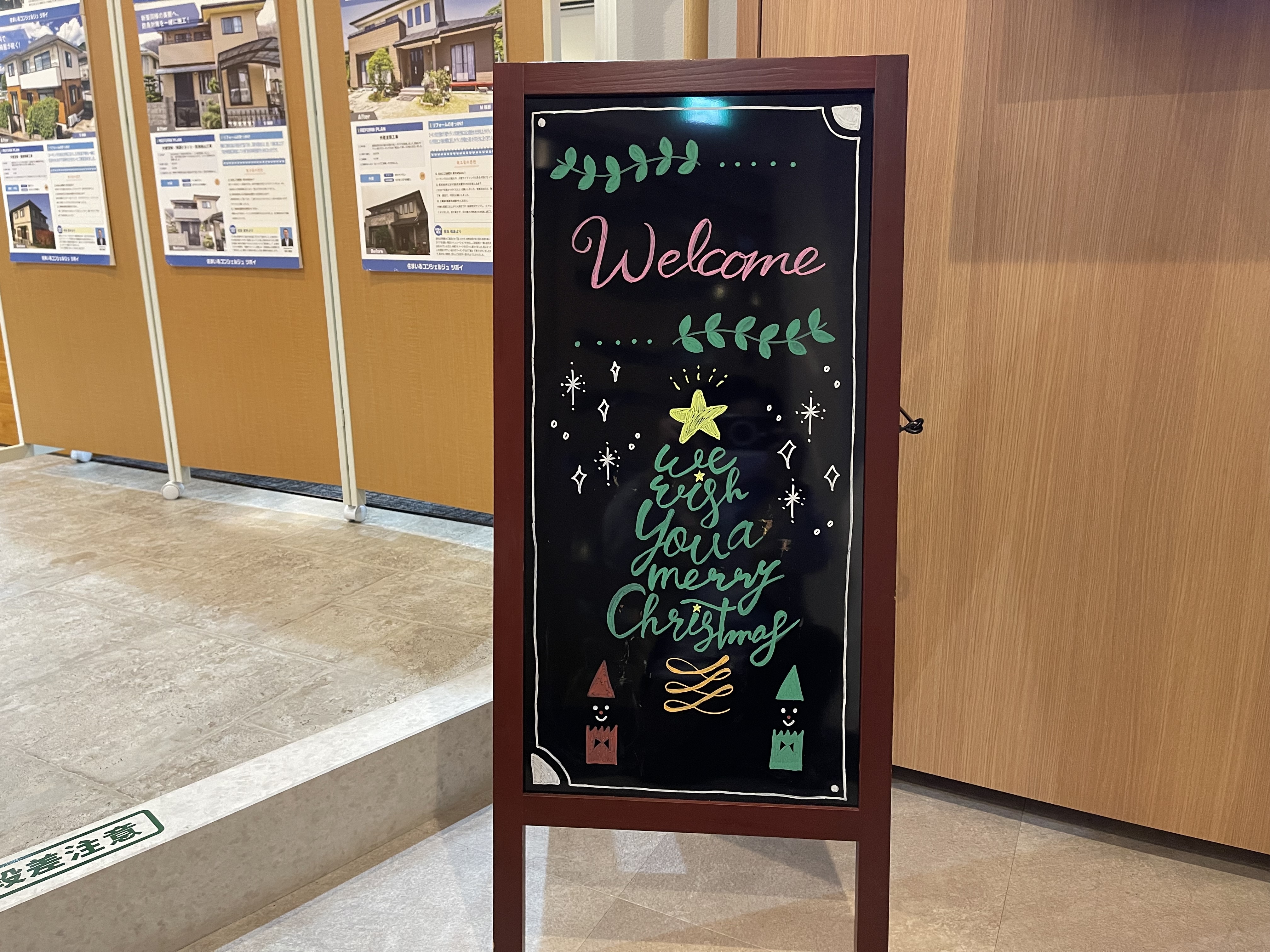 12月に入り、弊社の入り口に飾られているウエルカムボードも12月バージョンに模様替えいたしました。