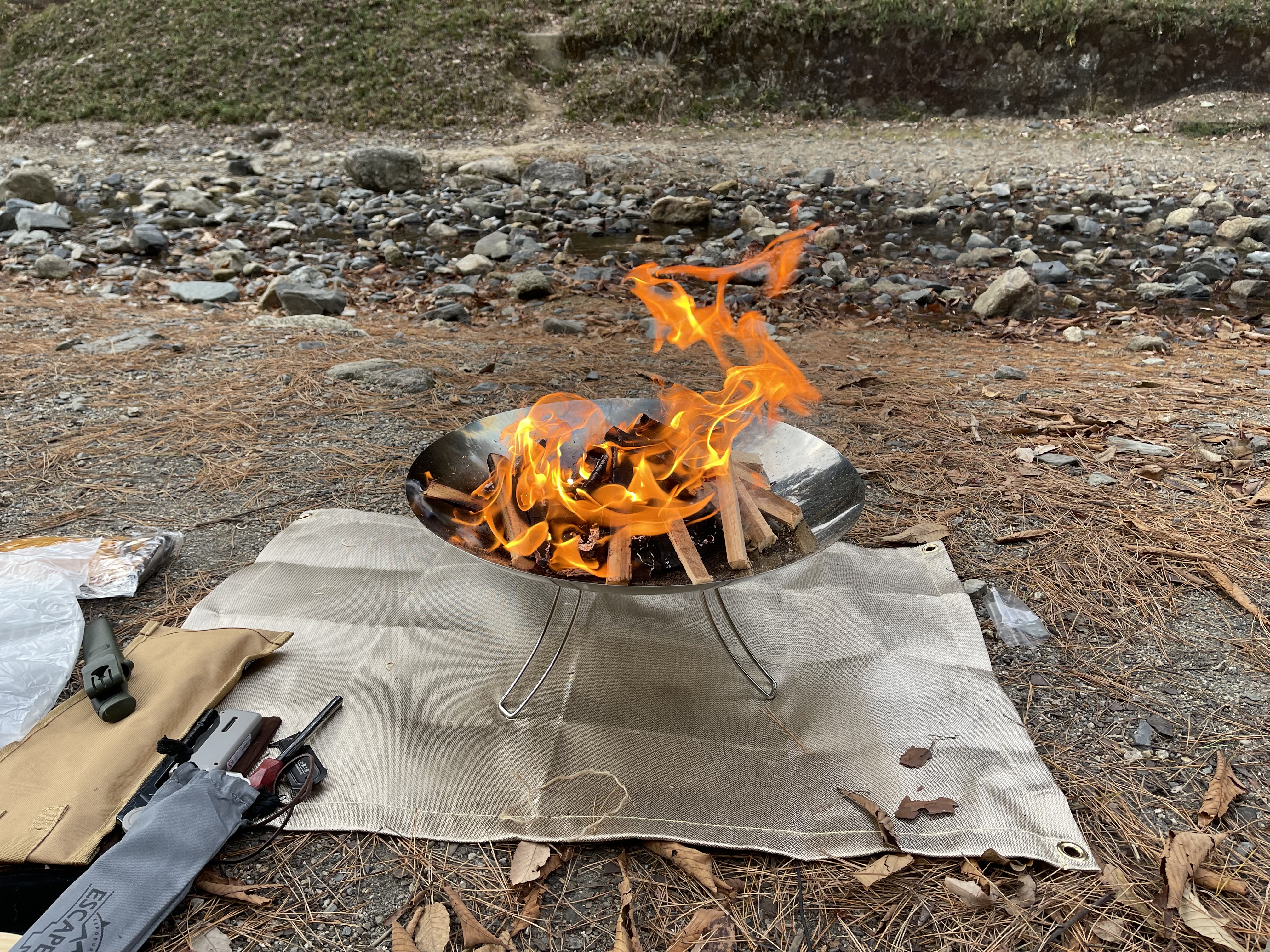 この日のためにYouTubeで火の起こし方から、それに纏わる道具など研究しました。