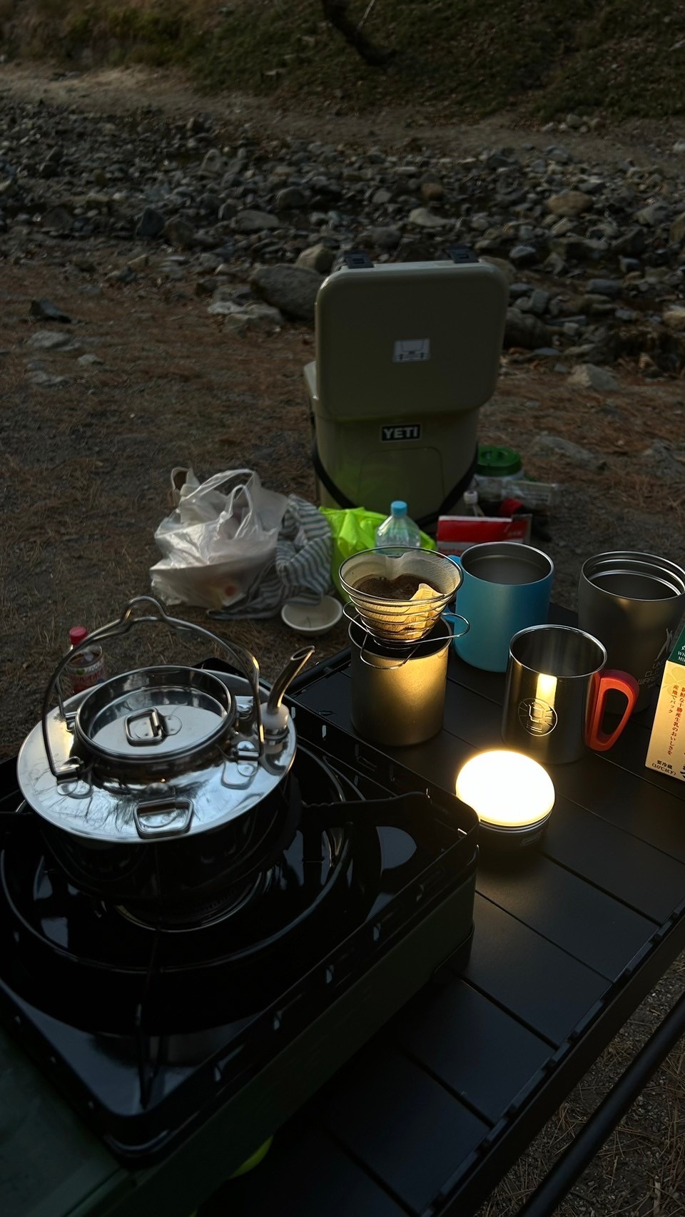 念願の初キャンプということもあり、不安なこともありましたが、やりたかった焚火とハンドグリップでのコーヒーも上手く出来て、初回にしては上々のデビューでした。