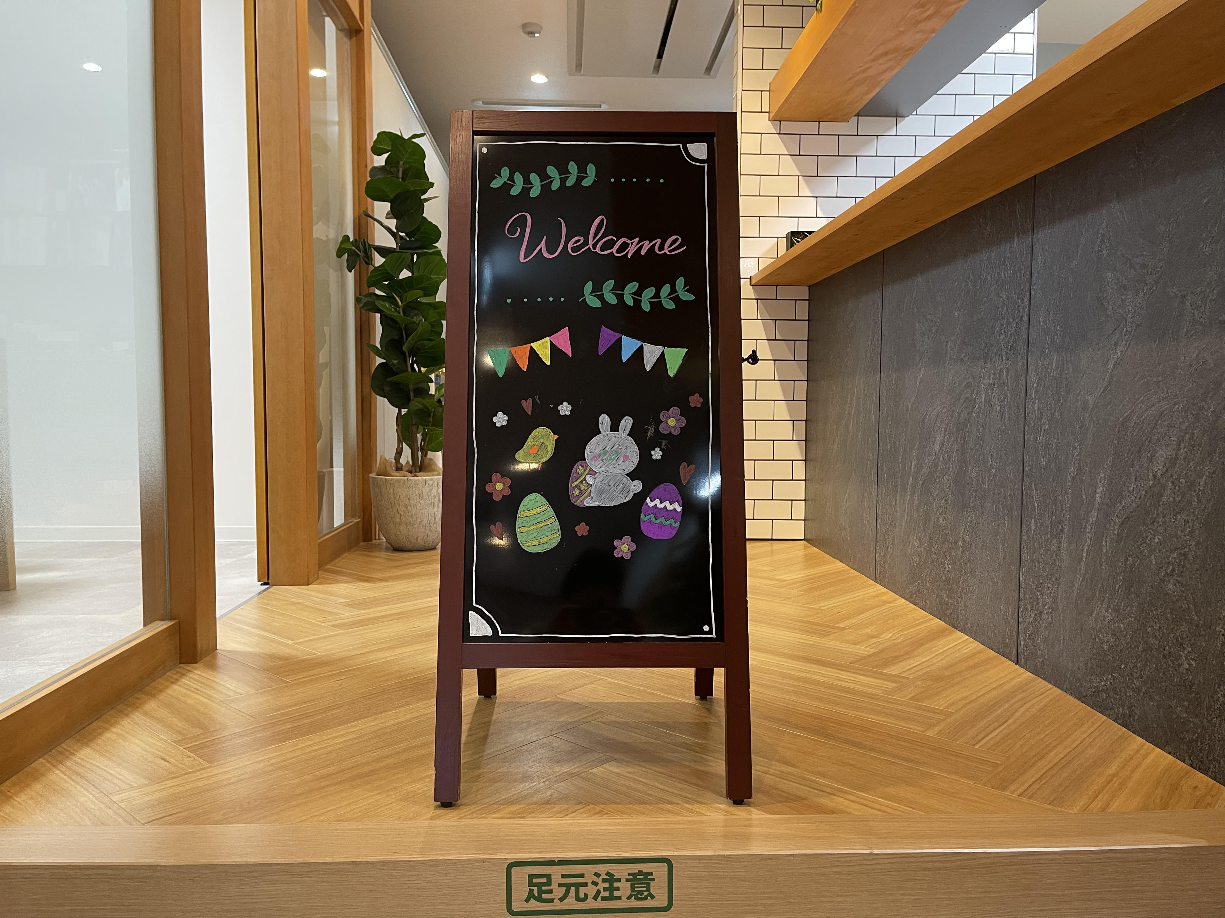 是非イースターがうまく描かれたウエルカムボードを見て癒されていただけたらと思います!