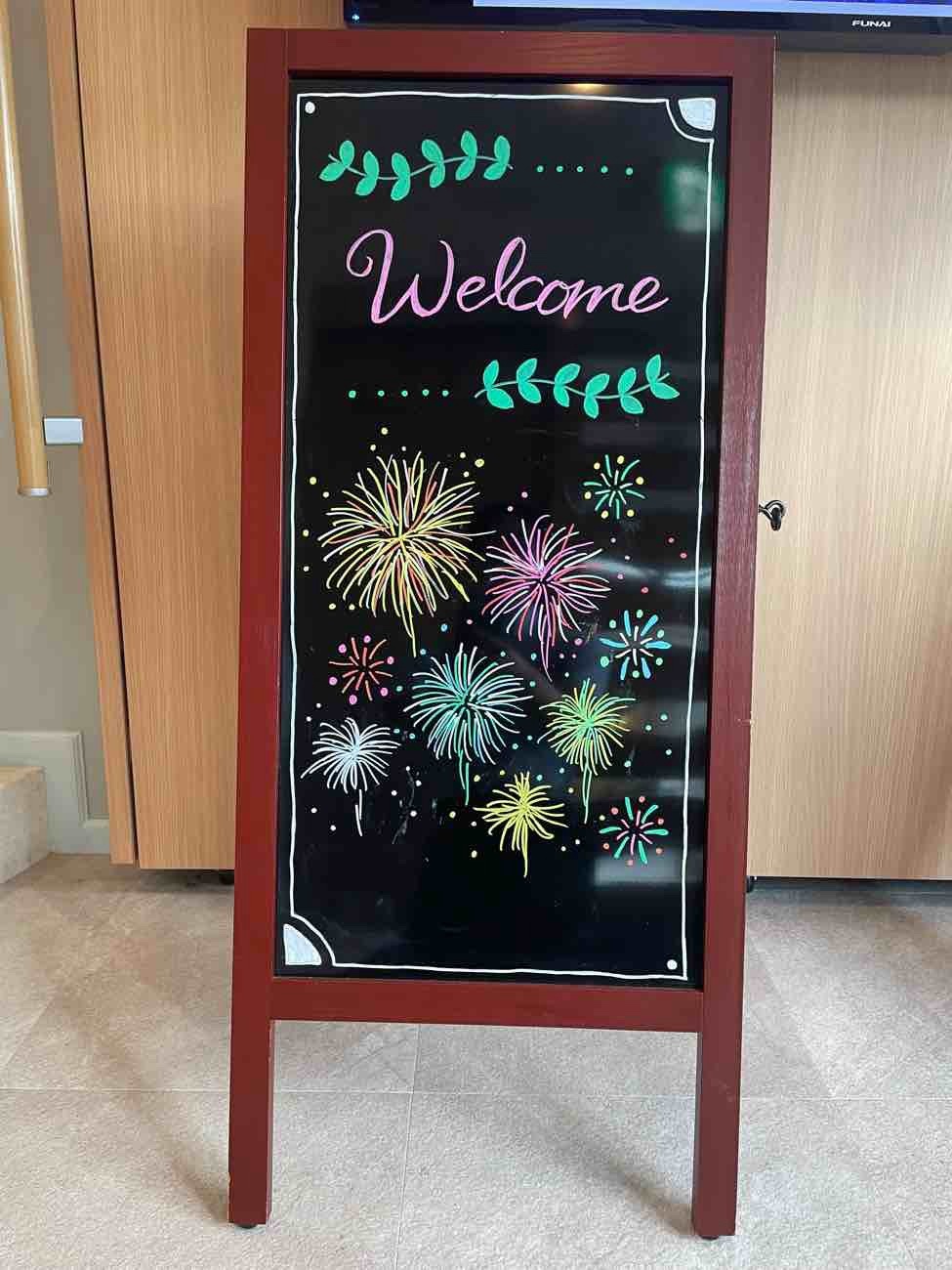 遠近感もうまく表現されている迫力ある花火のウエルカムボードを営業所でご覧くださいませ。