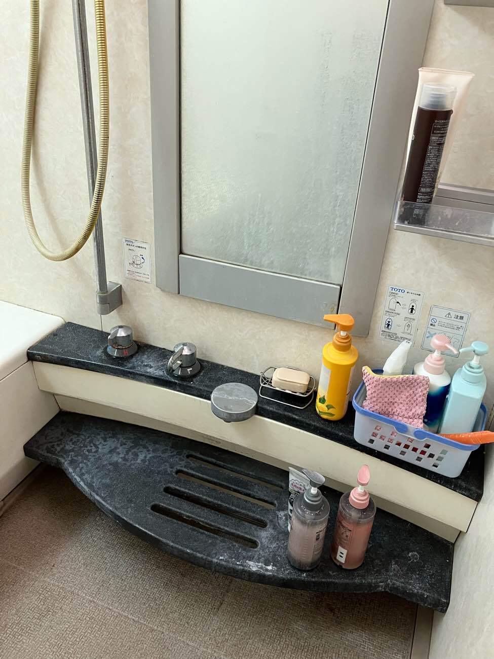 年数も経って古くなってきたからとリフォームを検討されていらっしゃいました。古いというお悩み以外にも、掃除がしにくいので掃除のしやすいものにしたいとのことでした。中でも、鏡や浴槽の蓋を掃除するのが手間とのことで、あえて鏡と蓋をなしに!なしにすることで、そもそも掃除をする必要性をなくしました♪