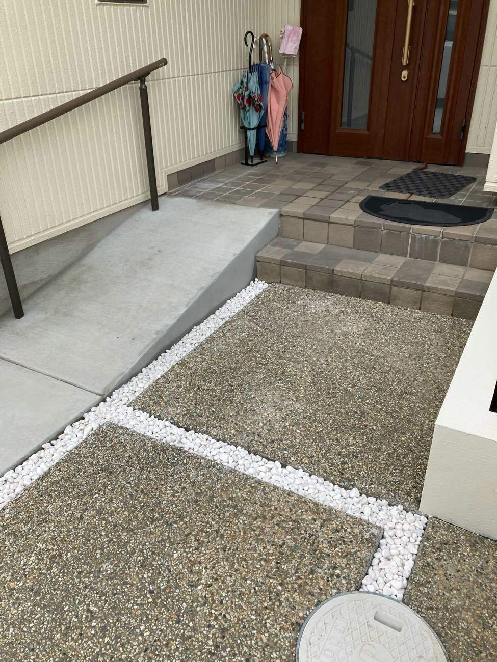 やるならかっこよくしたいという想いも聞いていましたので、かっこいい仕上がりになるよう、デザインや色合い、組み合わせ、商品など選びプランニングしました。また、これからのことを考え、将来に備えたスロープや花壇なども新たに作ることも、ご提案をさせていただきました。