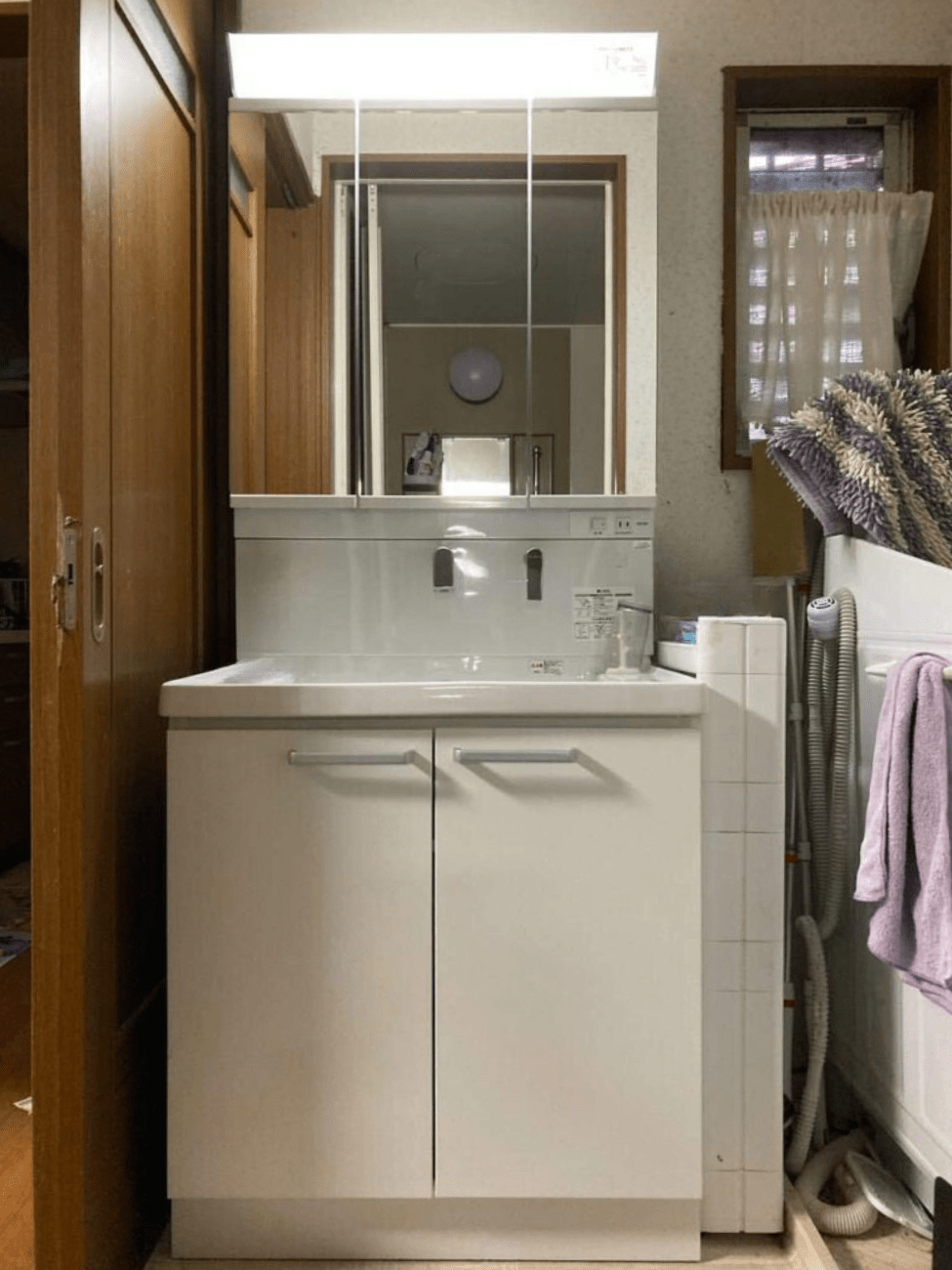 水栓のハンドル部分がぐらぐらしているので水栓を取替えたいとのご希望でしたが、使用年数をお伺いすると取替に最適な年数であったためそのことをお伝えし、洗面台ごとの取替になりました。