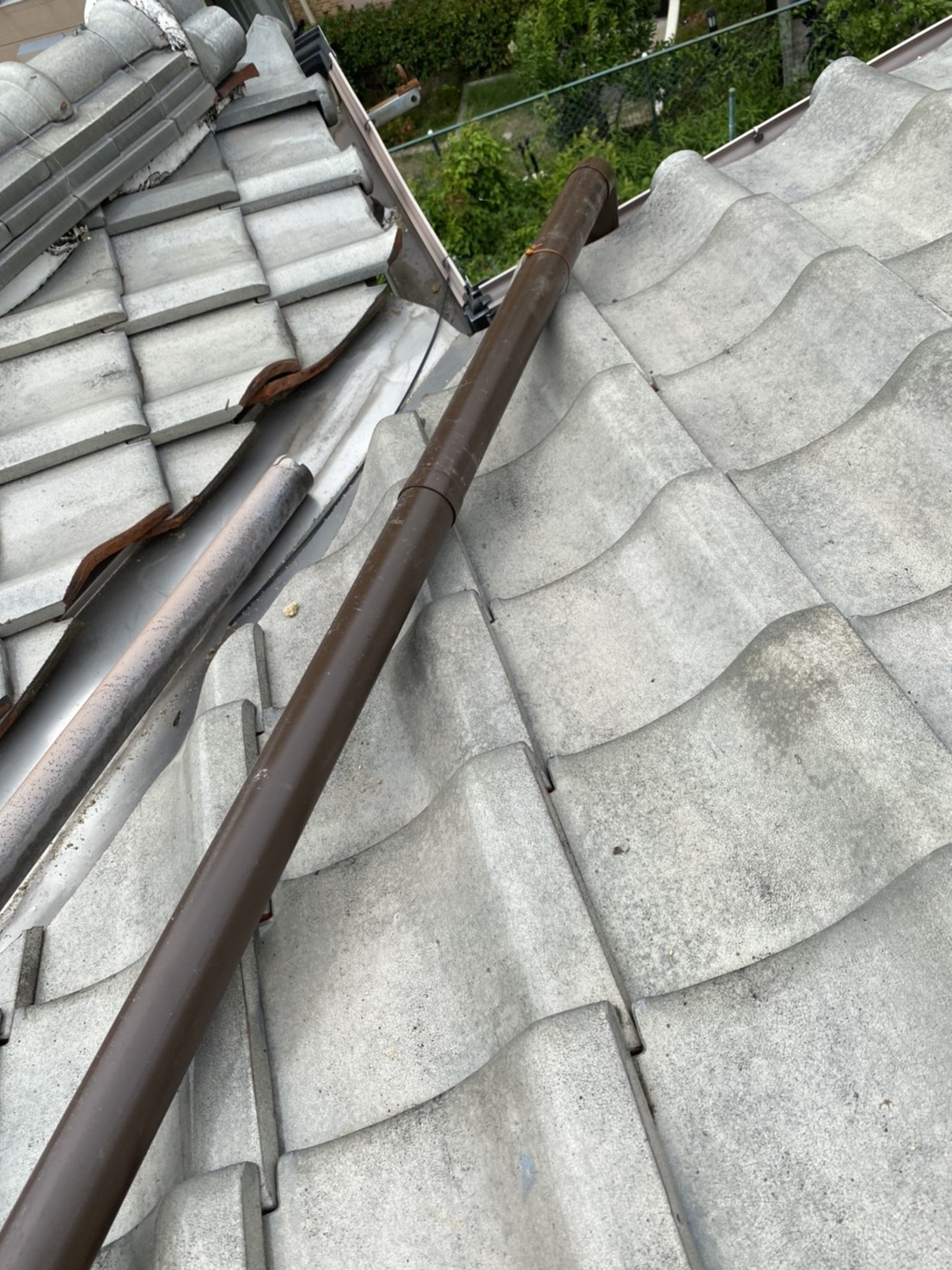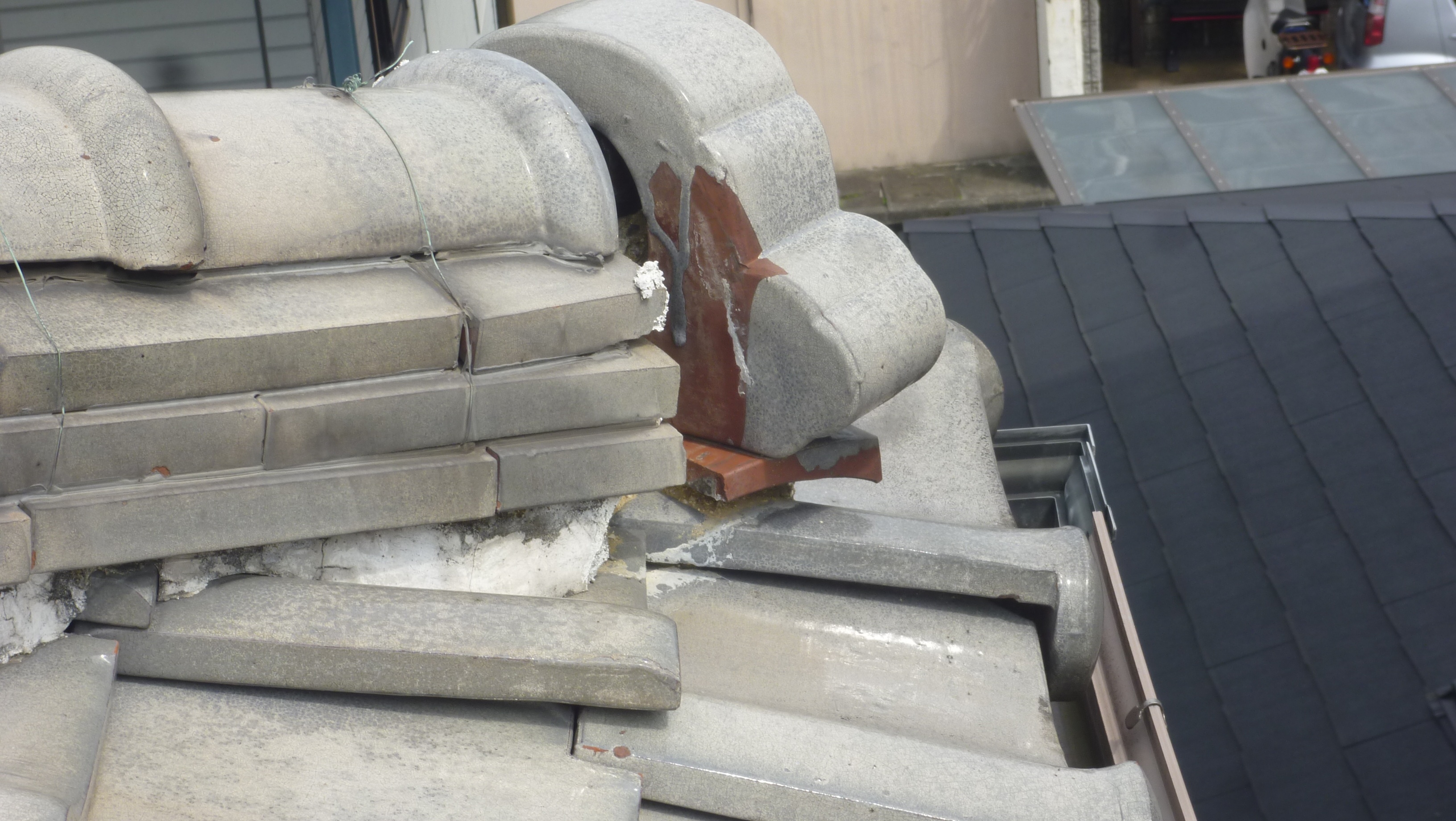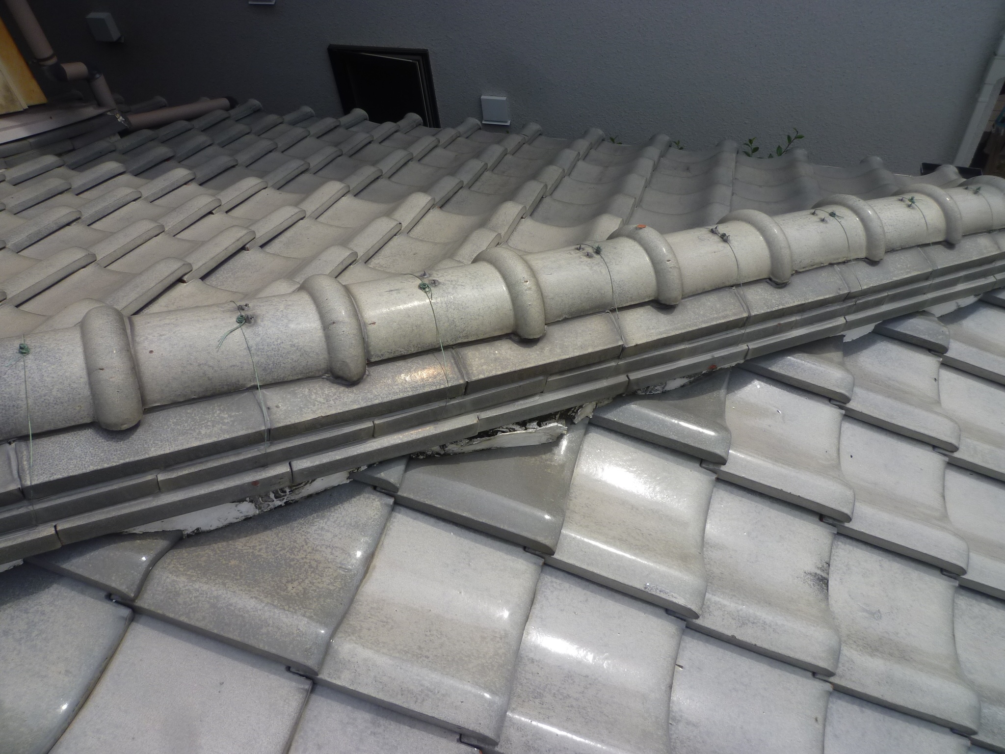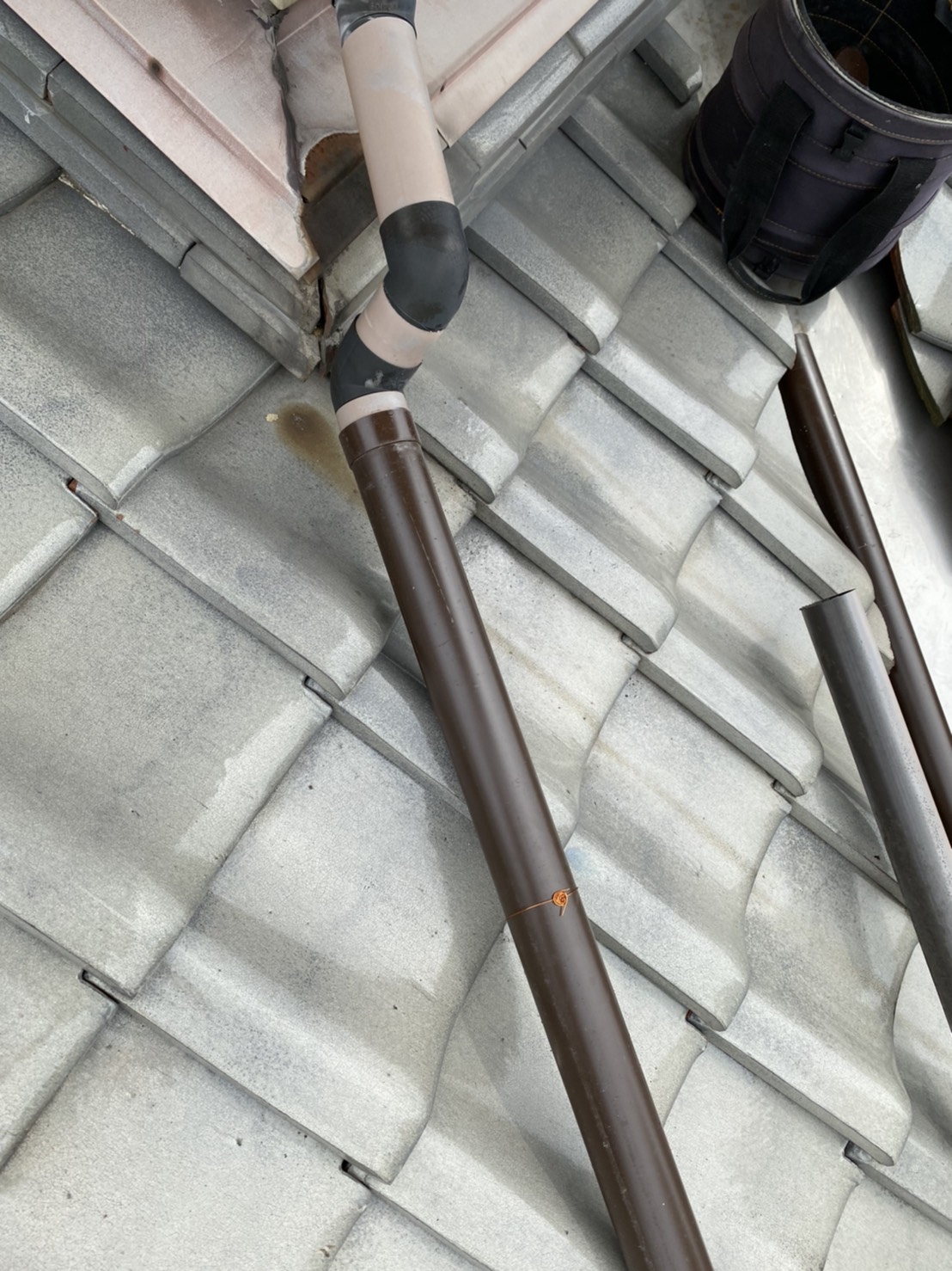 屋根診断後、鬼瓦の復旧、漆喰の補修、樋の傾斜調整、全体的な清掃を保険請求含めてご提案させて頂きました。