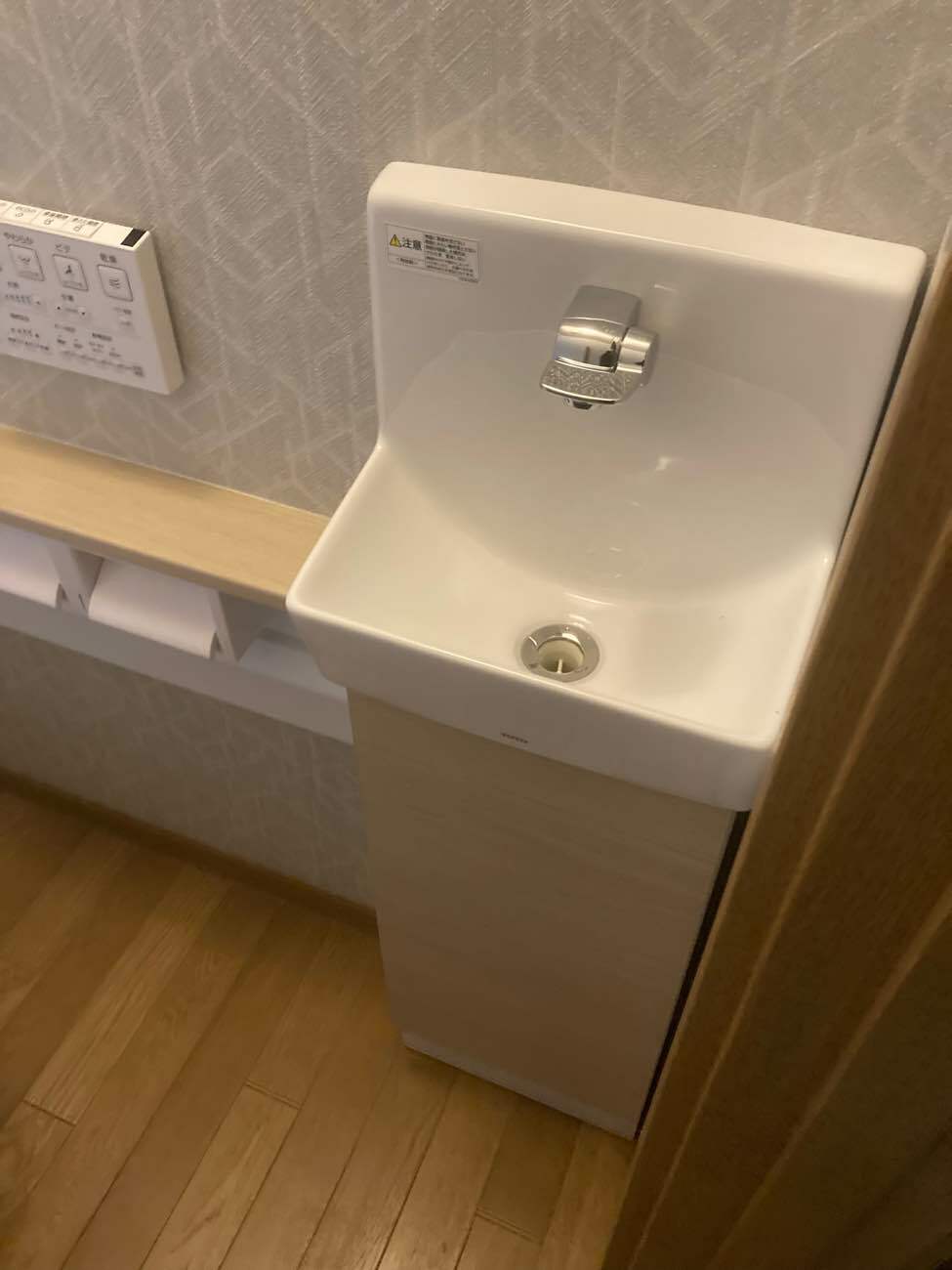 約10年使用されたトイレですが、樹脂タンクの手洗い部の汚れが取れなくなってきたことと、壁紙の汚れが気になるとお問い合わせをいただきました。