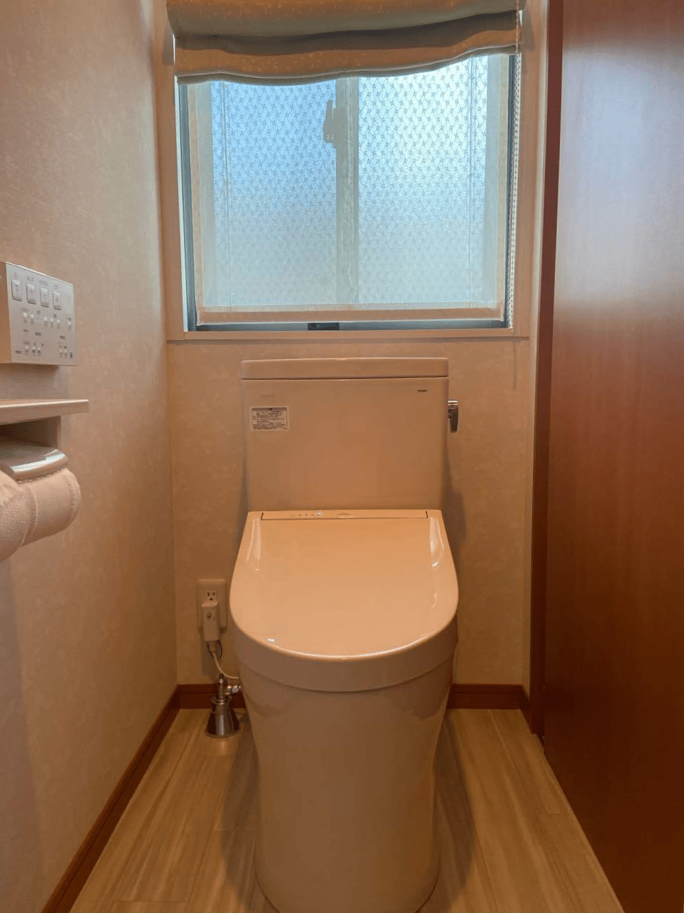 当初は便座のみの取替となっていましたが、どうせならとこの機会にトイレ本体ごとを交換することになり、2階のトイレに関しては、今と使い勝手は同じようなものをご希望であったので、使い慣れたものをご提案。1階も2階も同時にトイレが新しくなり、「1階のトイレも2階のトイレもとなって少しバタバタしたけど、いっぺんに済んでスッキリしました。」と仰っていただけました。
