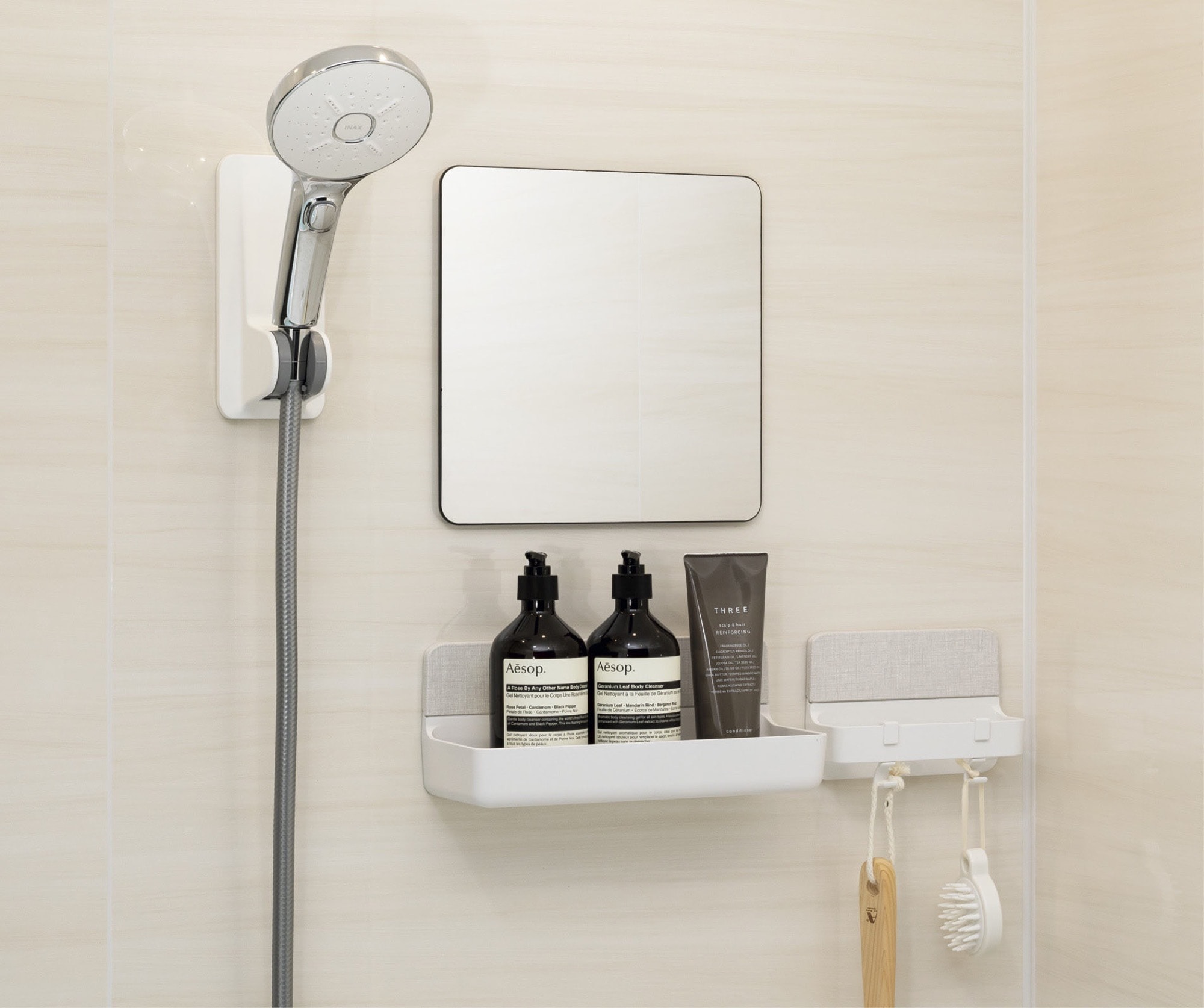 バスルームには、シャンプーやボディソープなどどうしても物が増えがち。しかし、ミラーやカウンター、ラックなどを取り付けると、これらのアイテムが汚れやカビの原因になりやすく、掃除の負担も増えてしまいます。最近では「必要なものはその都度持ち込む」というスタイルを取り入れる家庭も多くなっています。このスタイルなら、毎回使うアイテムがその場に残らないため、バスルームの清潔さを保ちやすくなります。