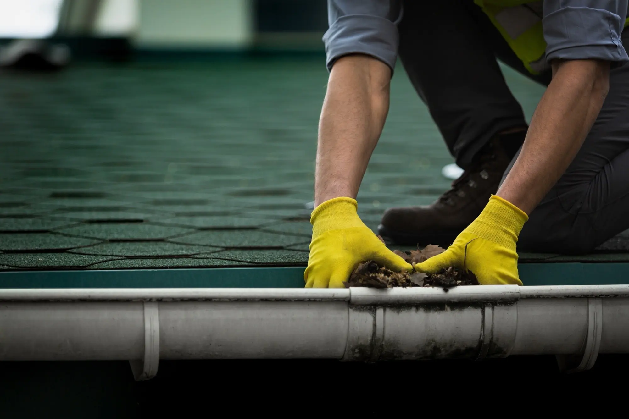 雨どいにたまった落ち葉・枯れ葉の掃除を行ったうえで、