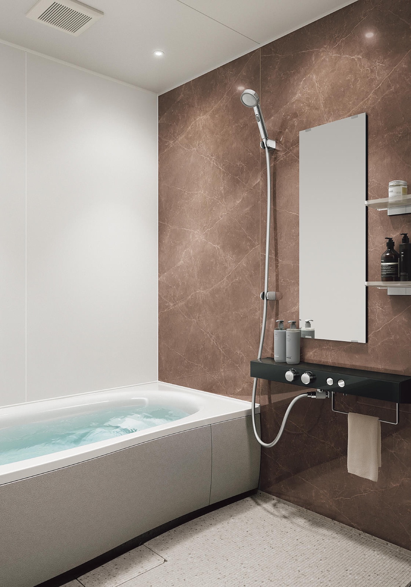 音楽メーカー・ヤマハの技術が活きた浴室音響「サウンドシャワー」や、美しい人造大理石の「エクランバス」が魅力。バスタイムに音楽や動画を楽しみたい方にぴったり。機能性と感性のバランスが整っています。