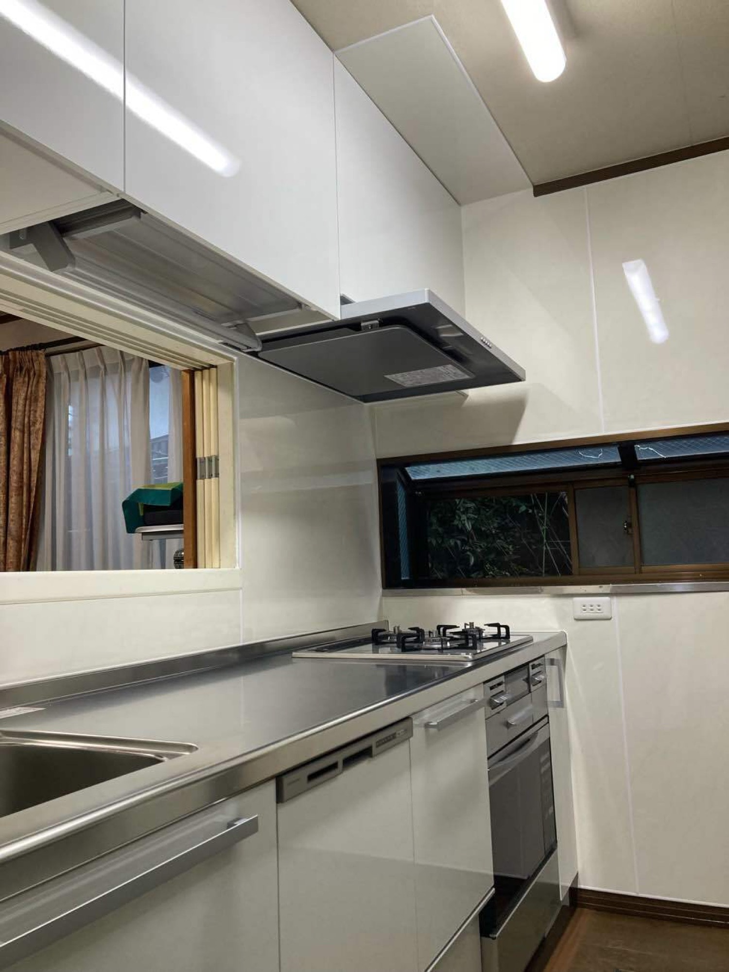 新しいキッチンは、汚れが付きにくく掃除がしやすい素材に。作業台の高さもぴったり合わせたことで、体への負担も軽減。レンジフードも最新のものになり、吸引力・静音性ともに大幅アップ。もちろん、壊れていた吊り戸棚も、安全で便利な仕様になりました。