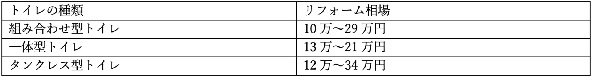 リフォームをするトイレの種類別の相場を以下の一覧にまとめました。