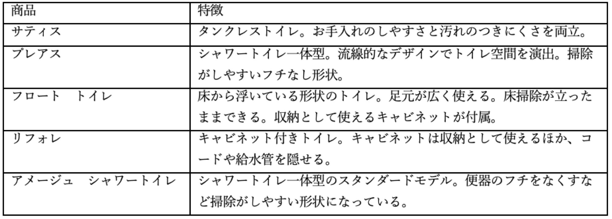 トイレメーカー大手であるTOTOは、ウォッシュレットを開発した会社としても有名です。代表的な商品には以下のものがあります。