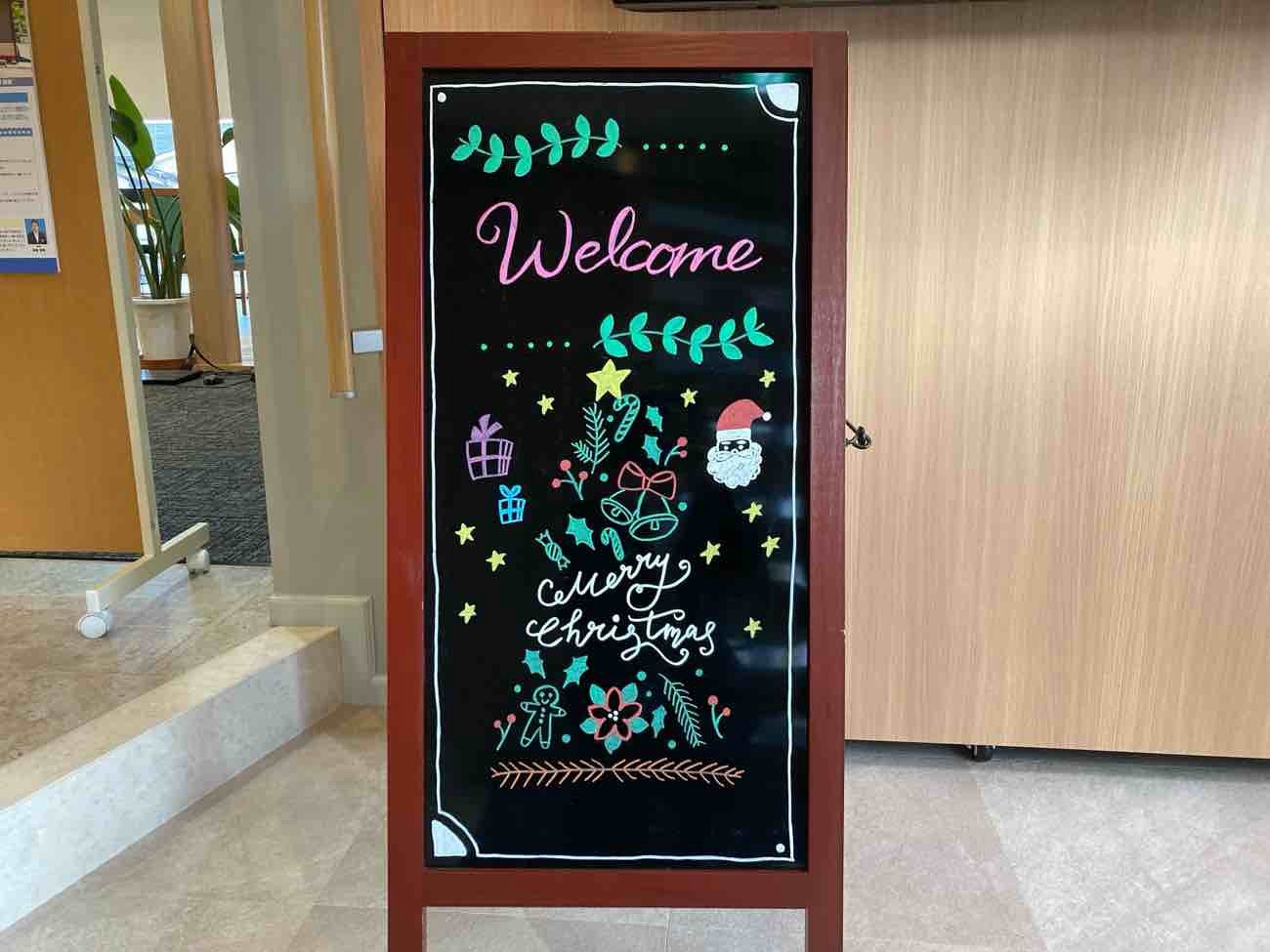 月も変わり、ウエルカムボードも12月仕様と