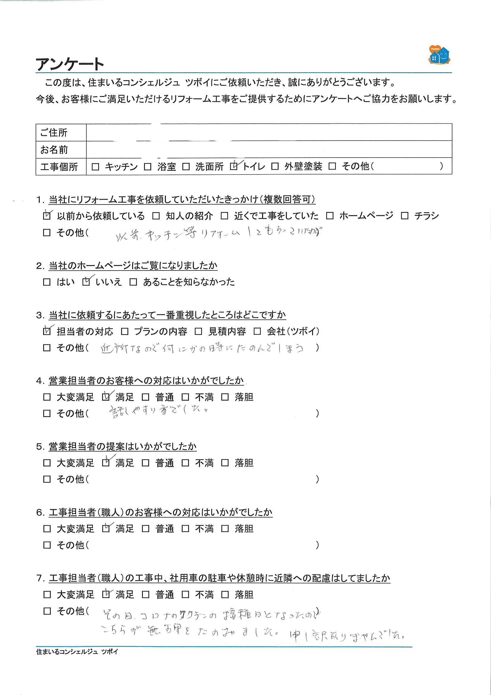 この度はトイレのリフォーム工事をご依頼いただきありがとうございました。