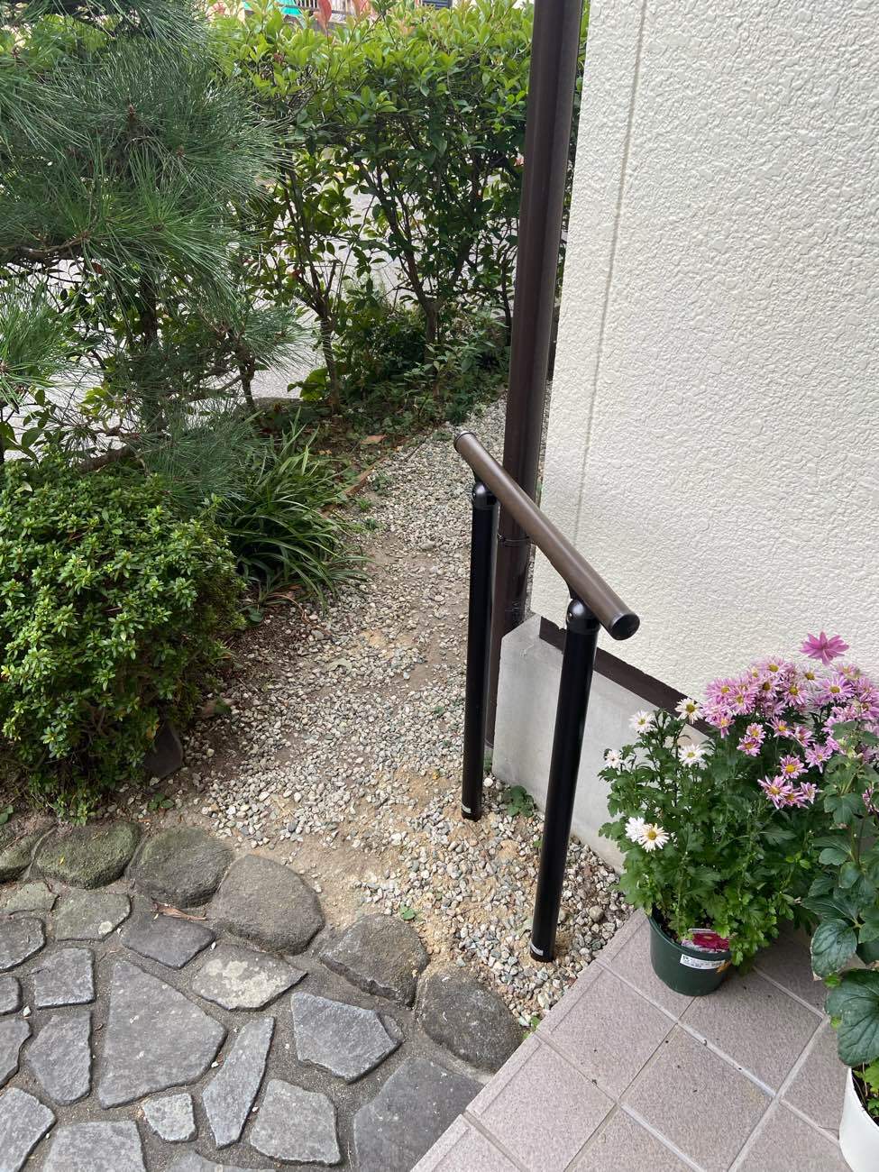 また、お家でお茶や華道の教室を開かれていることもあり、生徒さんもよく出入りされるとのこと。生徒さんのためにも、安全に、安心して来てもらいたいとお話をされていたため、皆さまにとって快適なお暮らし、快適にお過ごしいただくためにと手摺の位置をお客様とご一緒に考えました。