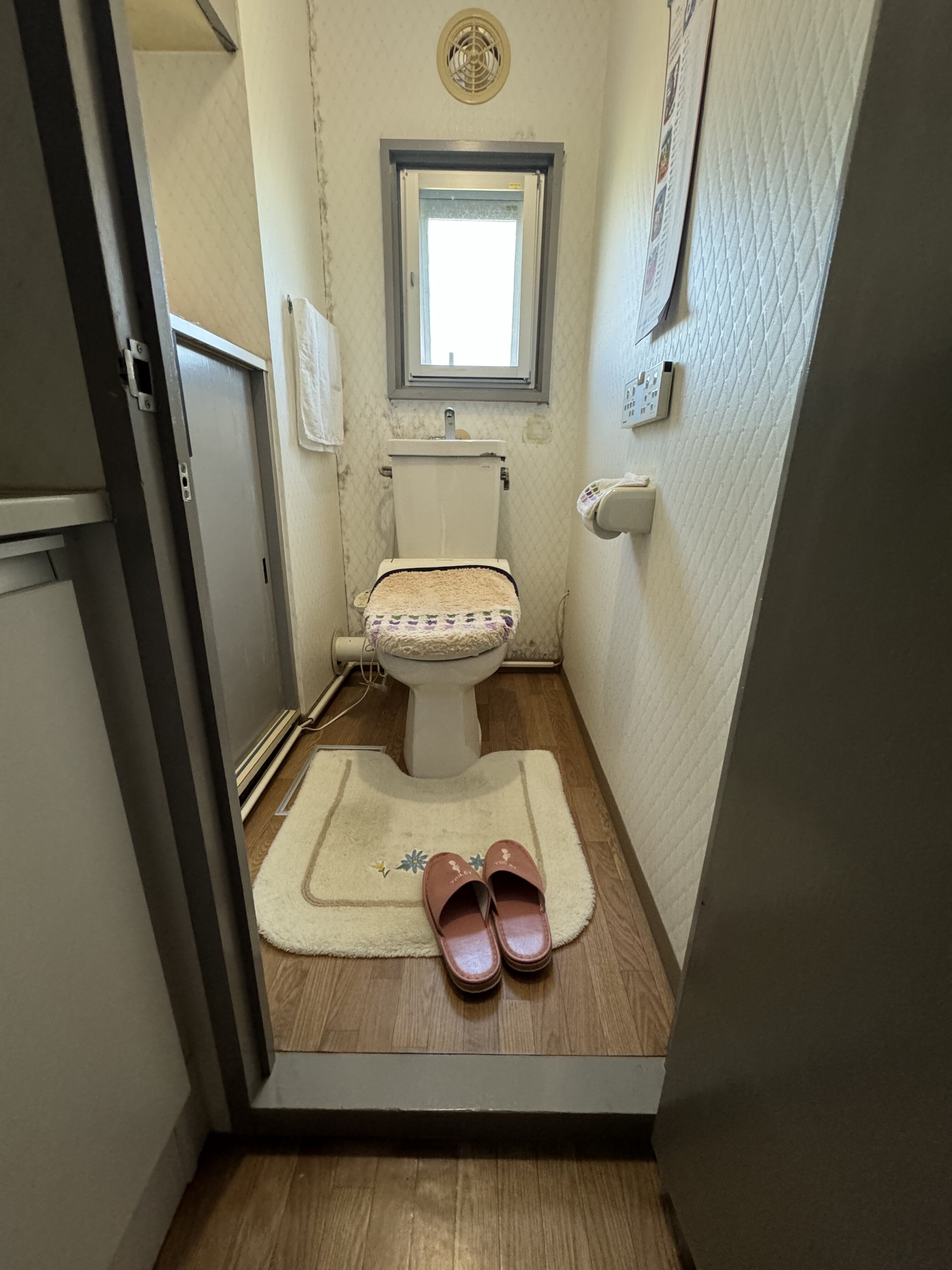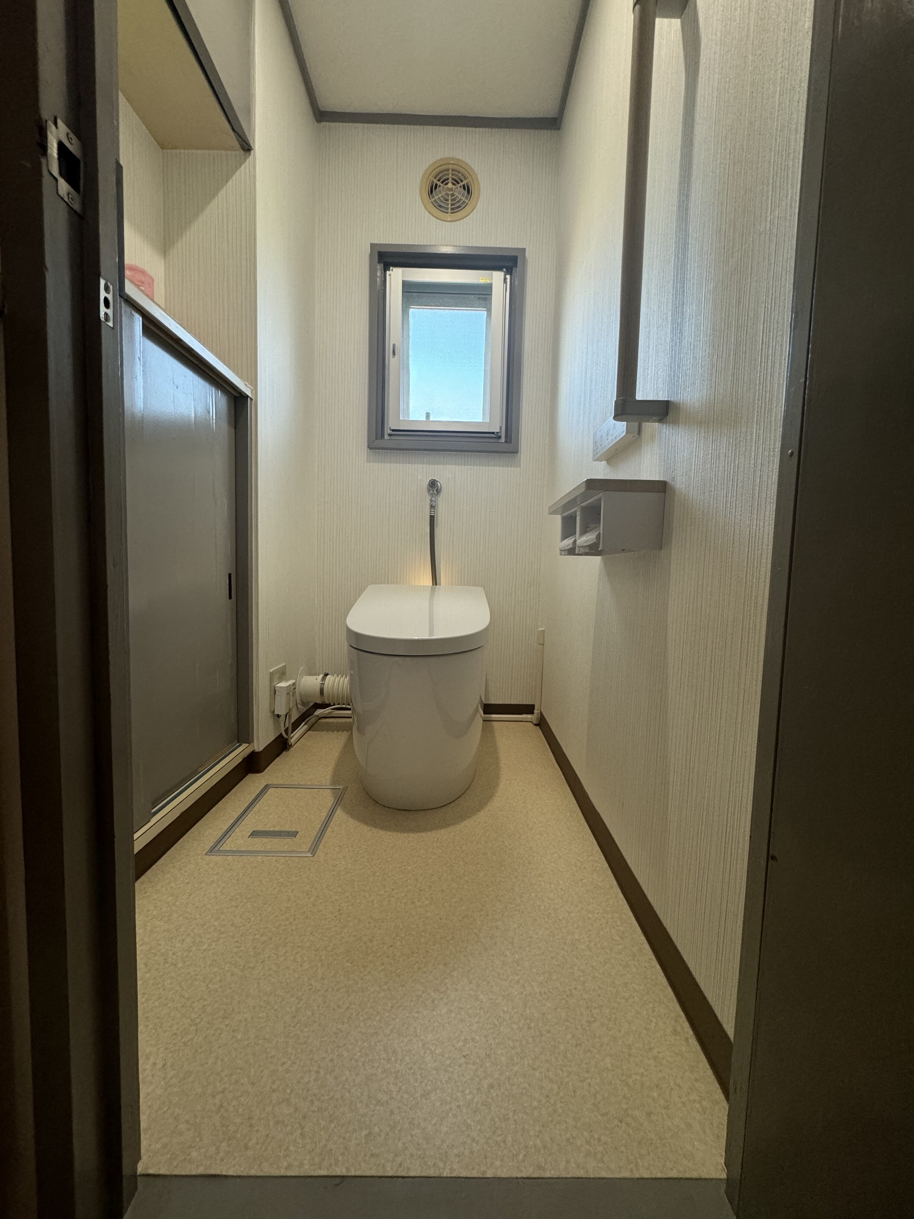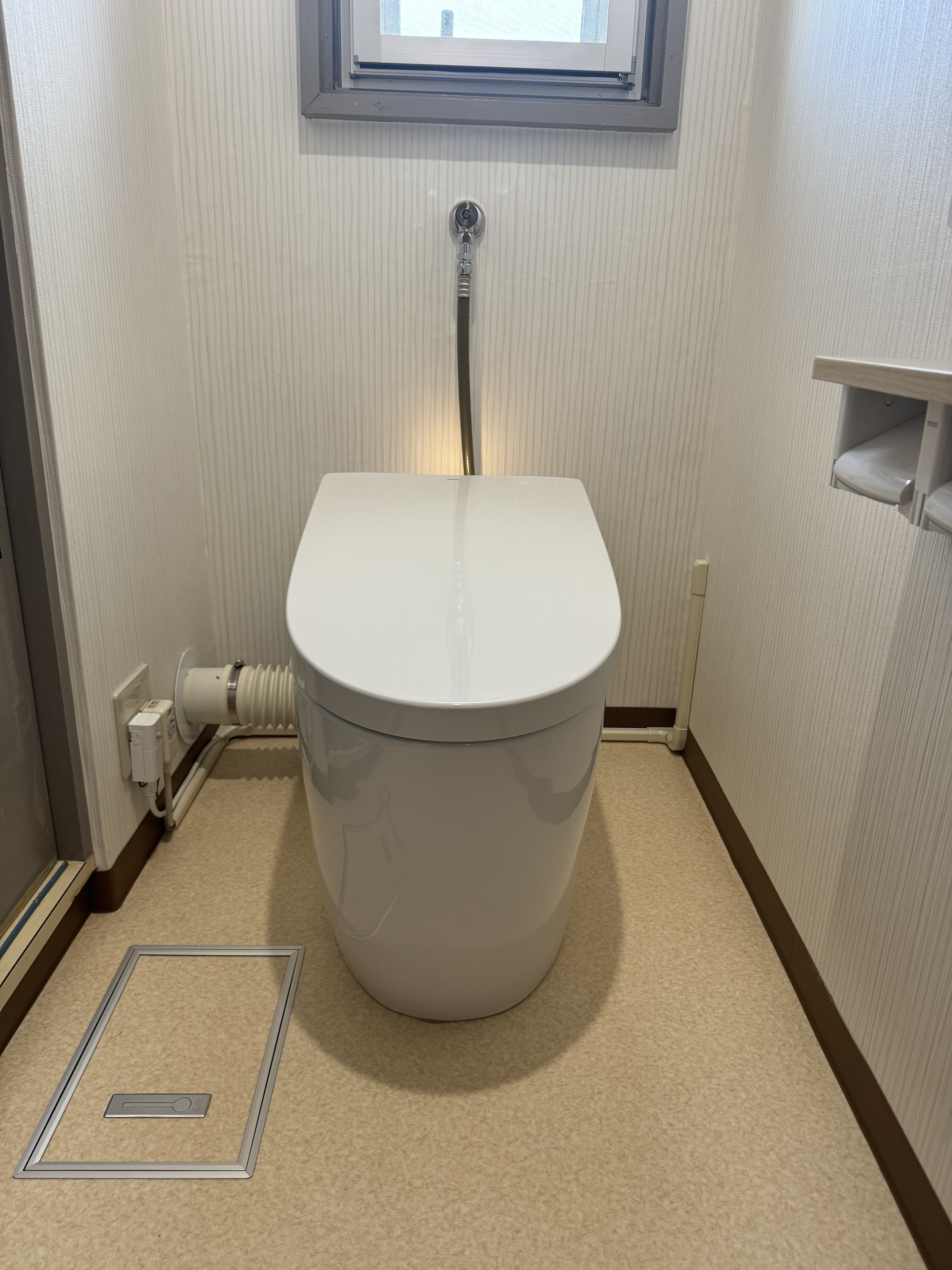 天井をジプトーンからクロスに変更し、壁と床も新しいクロスとクッションフロアに張り替えて清潔感を演出。湿気対策もしっかり施し、トイレ全体が快適で安全な空間に生まれ変わりました。