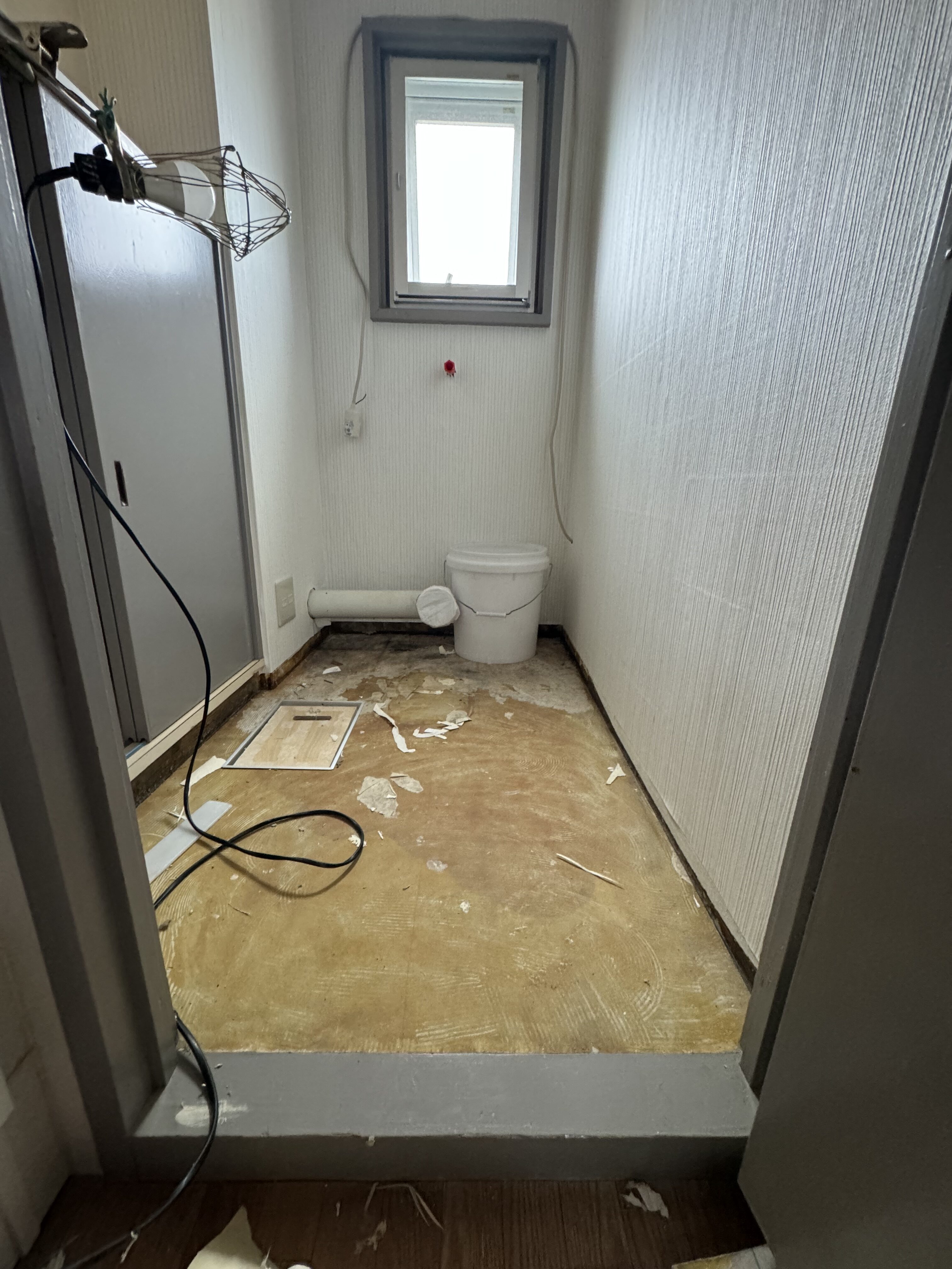 お客様から、掃除が大変な便器の縁や冬の寒さ対策のために電気ヒーターを使っていることなどのご相談をいただきました。また、湿気によるカビや床の老朽化、配線の乱雑さも気になるとのこと。将来的な安心のために手すりの設置もご希望でした。