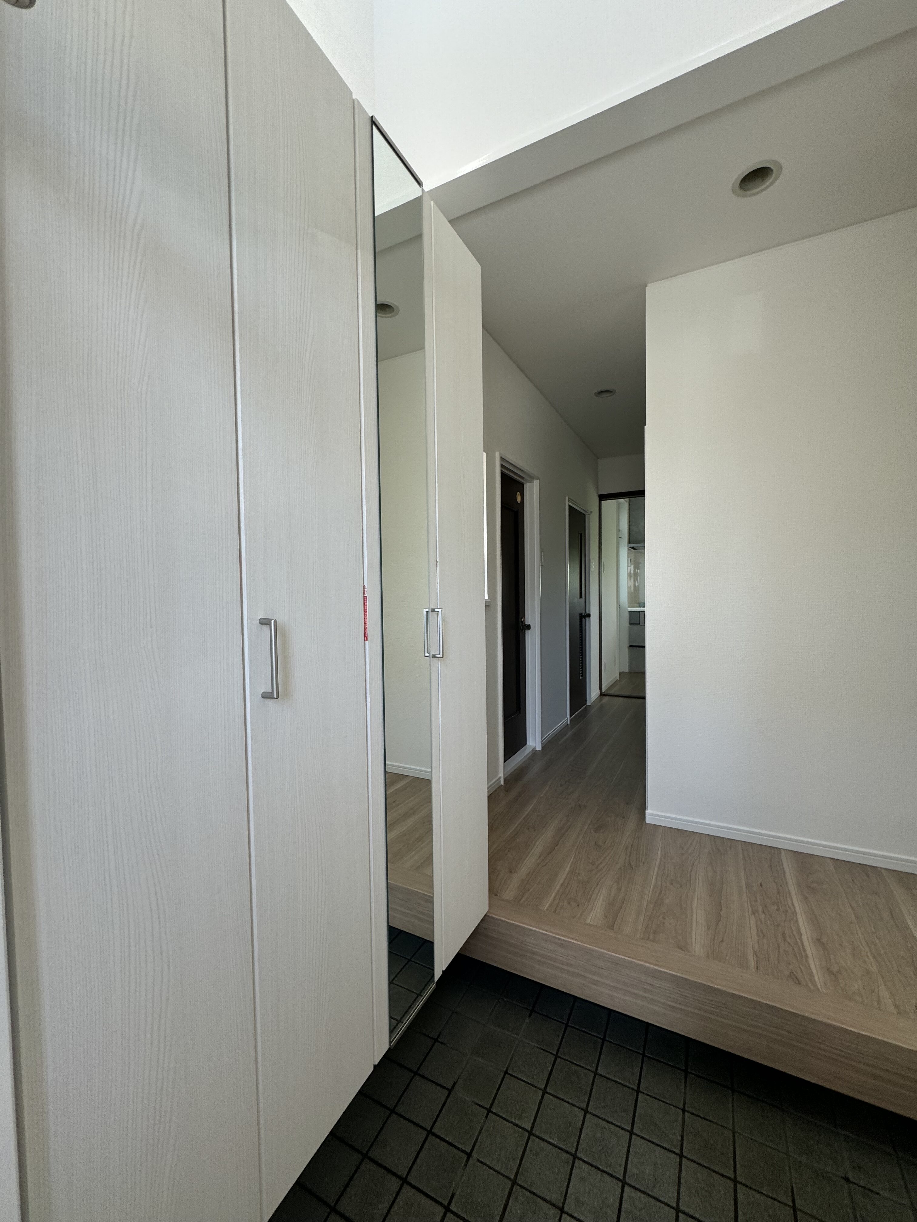 クロークボックスのおかげで、靴の収納に困ることがなくなり、室内は明るく、洗練された印象に仕上がりました。