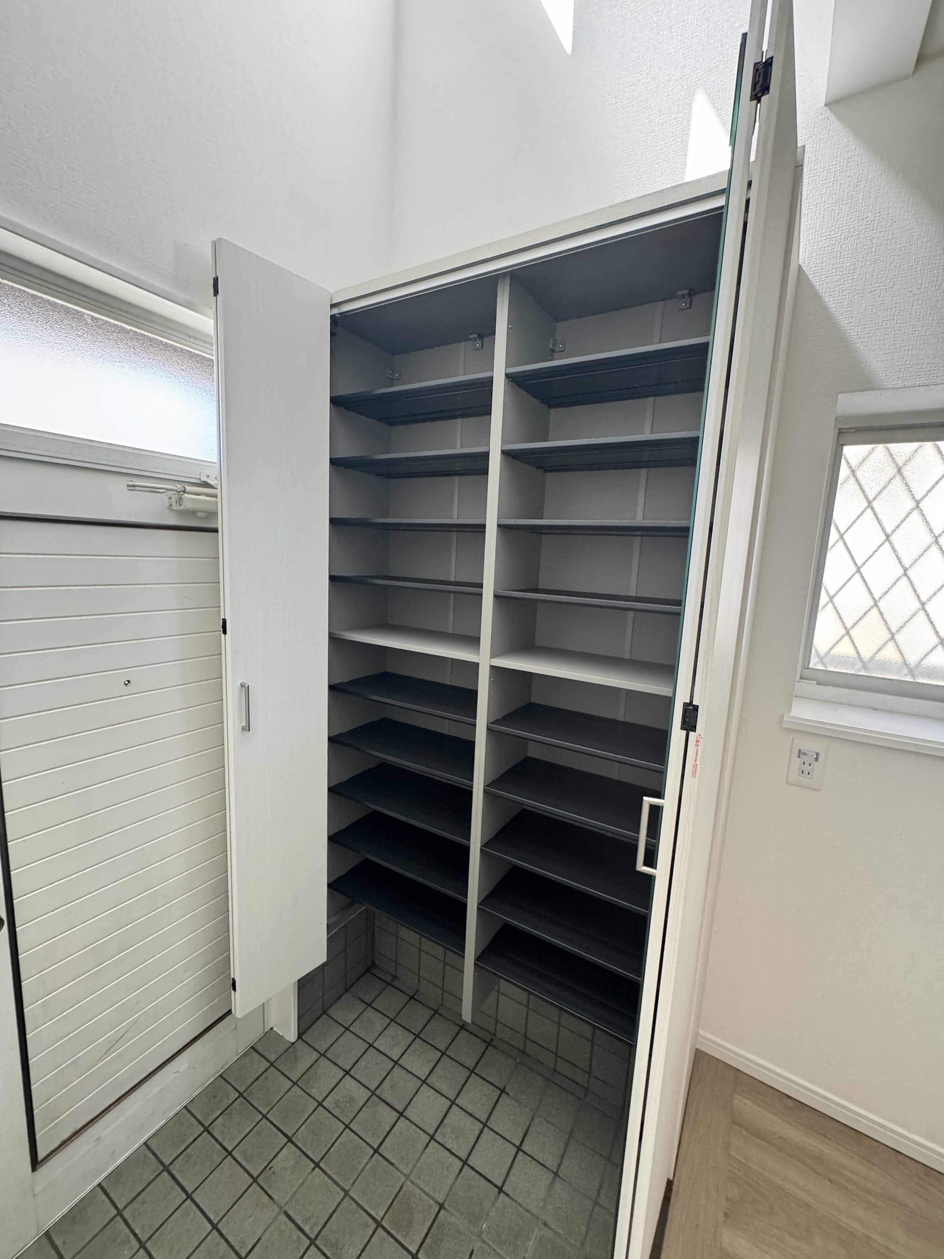 小学生以下のお子様が三人おり、靴が30足以上あるというお悩みを抱えていたお客様。今後さらに靴が増える可能性があるため、50足以上収納できるクロークボックスを設置したいと考えていました。