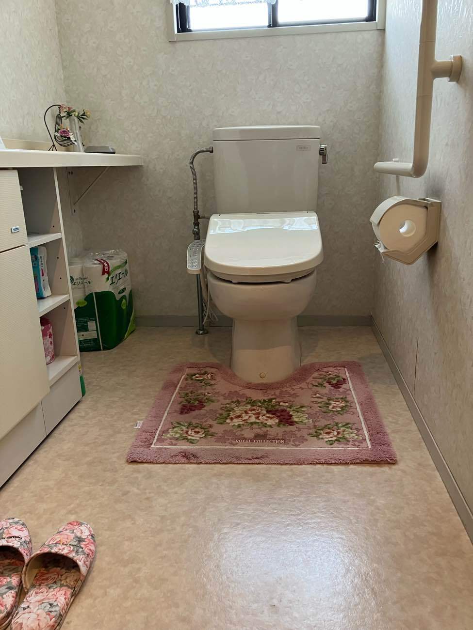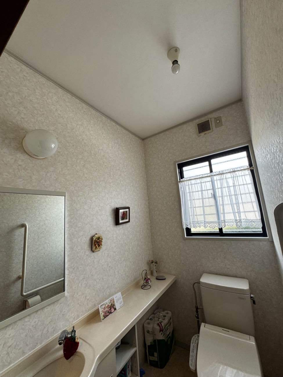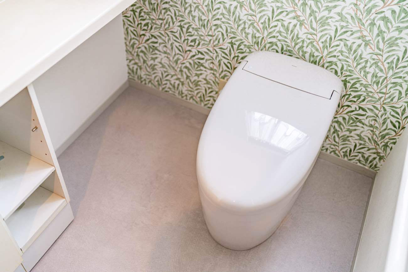 トイレのクロスとクッションフロアの貼り替えをご検討されていたのがきっかけで、ご相談をいただきました。お話を伺う中で、クッションフロアは便器と接して施工するため、どうせなら便器も一緒に新しくしてみてはどうかとご提案させていただきました。実際に弊社の営業所にあるトイレをご覧いただき、タンクレスやフチなし便器の掃除のしやすさを見学いただきました。「お掃除が楽になるのは嬉しいけれど、全部自動よりも、ある程度は自分で手入れしたい」というご希望をふまえ、機能とデザインのバランスが取れた機種を選定しました。内装については「明るくおしゃれな雰囲気にしたい」とのリクエストがあったので、限られた空間を活かして正面の壁に柄入りクロスをアクセントとして取り入れました。クッションフロアや便器の色味も合わせて統一感を出し、明るく清潔感のある空間に仕上がりました。完成後には、「トイレの印象ががらっと変わって、まさにリフォームした!って感じがします」と、とても喜んでいただきました。