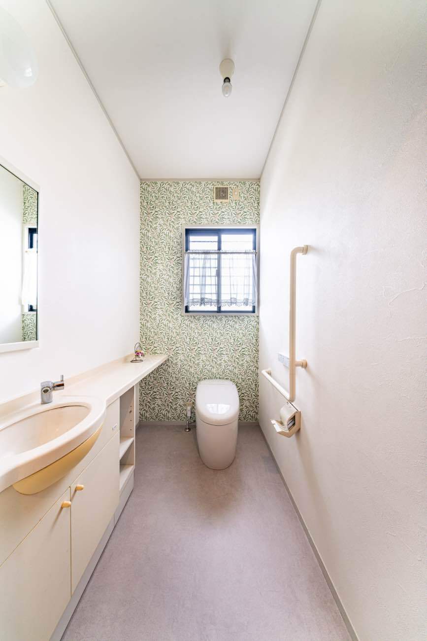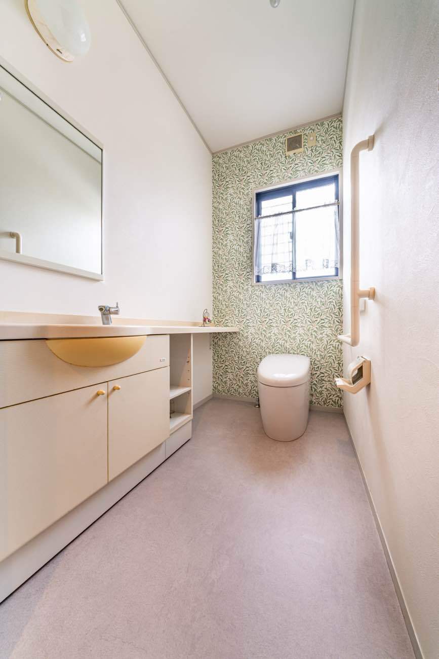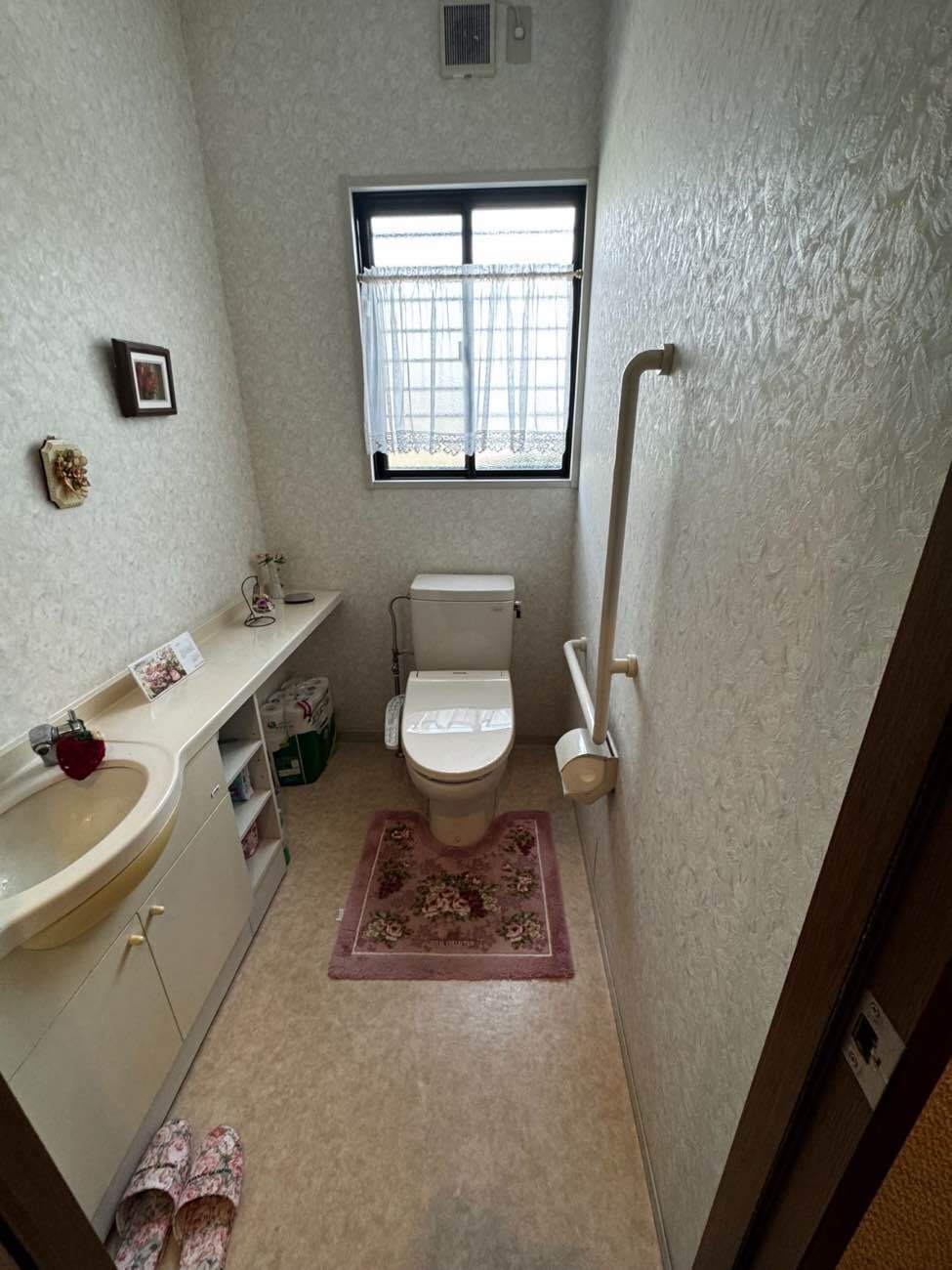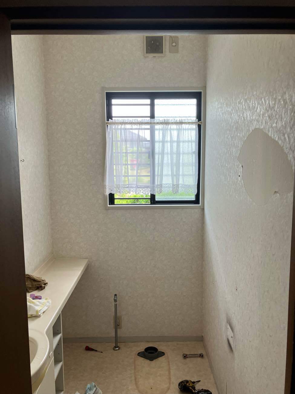 トイレのクロスとクッションフロアの貼り替えをご検討されていたのがきっかけで、ご相談をいただきました。お話を伺う中で、クッションフロアは便器と接して施工するため、どうせなら便器も一緒に新しくしてみてはどうかとご提案させていただきました。実際に弊社の営業所にあるトイレをご覧いただき、タンクレスやフチなし便器の掃除のしやすさを見学いただきました。「お掃除が楽になるのは嬉しいけれど、全部自動よりも、ある程度は自分で手入れしたい」というご希望をふまえ、機能とデザインのバランスが取れた機種を選定しました。内装については「明るくおしゃれな雰囲気にしたい」とのリクエストがあったので、限られた空間を活かして正面の壁に柄入りクロスをアクセントとして取り入れました。クッションフロアや便器の色味も合わせて統一感を出し、明るく清潔感のある空間に仕上がりました。完成後には、「トイレの印象ががらっと変わって、まさにリフォームした!って感じがします」と、とても喜んでいただきました。