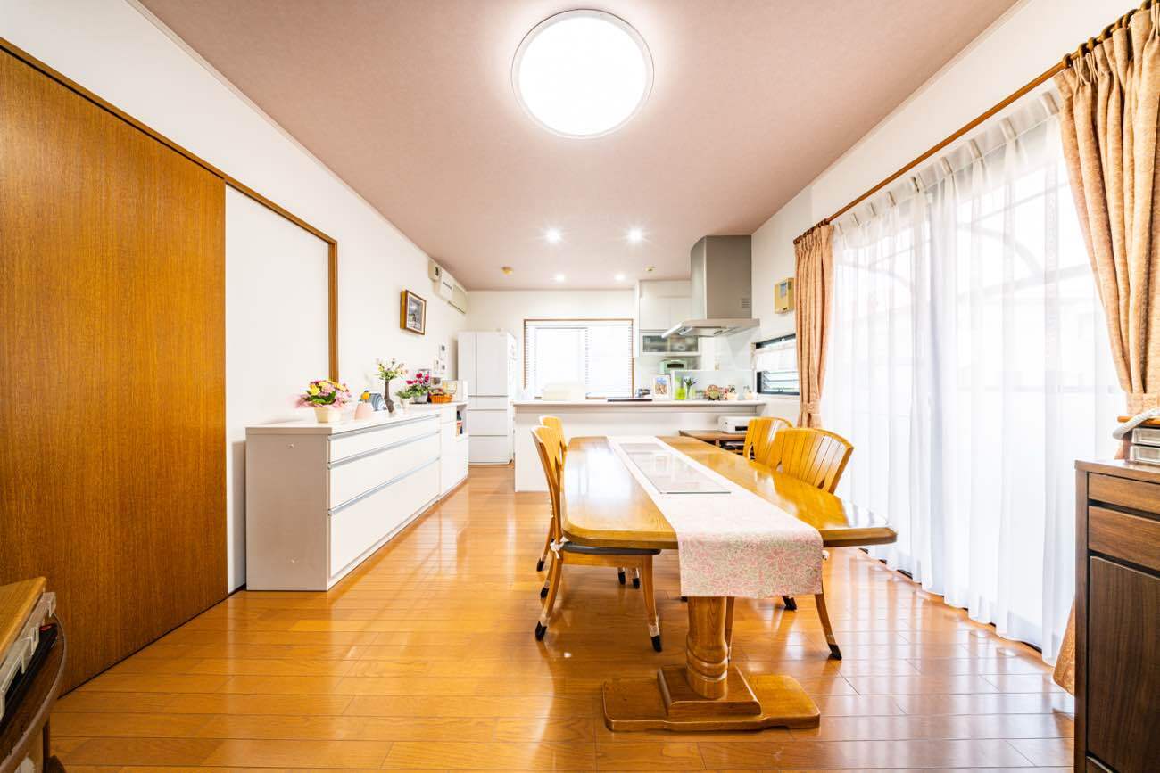 「クロスを貼り替えてお部屋をおしゃれにしたい」とのご相談をいただきました。お客様は、リビングダイニングの既存のクロスがあまり気に入っておらず、絵画や作品を飾っているため、それらの雰囲気を邪魔しないデザインをご希望でした。クロスは種類が豊富で、似た色味やデザインも多いため、「選ぶのが難しい」とのお声もありました。そこで、お住まいの雰囲気やお好みを丁寧にヒアリングしながら、いくつかのクロスをご提案。その中からお気に入りのクロスをお選びいただきました。リフォーム後には、「落ち着いたピンク色もいい色だし、柄の凹凸も大きくてとても気に入った」と、うれしいお言葉をいただきました。お部屋全体の印象も柔らかくなり、飾られた作品との相性も良く仕上がりました。