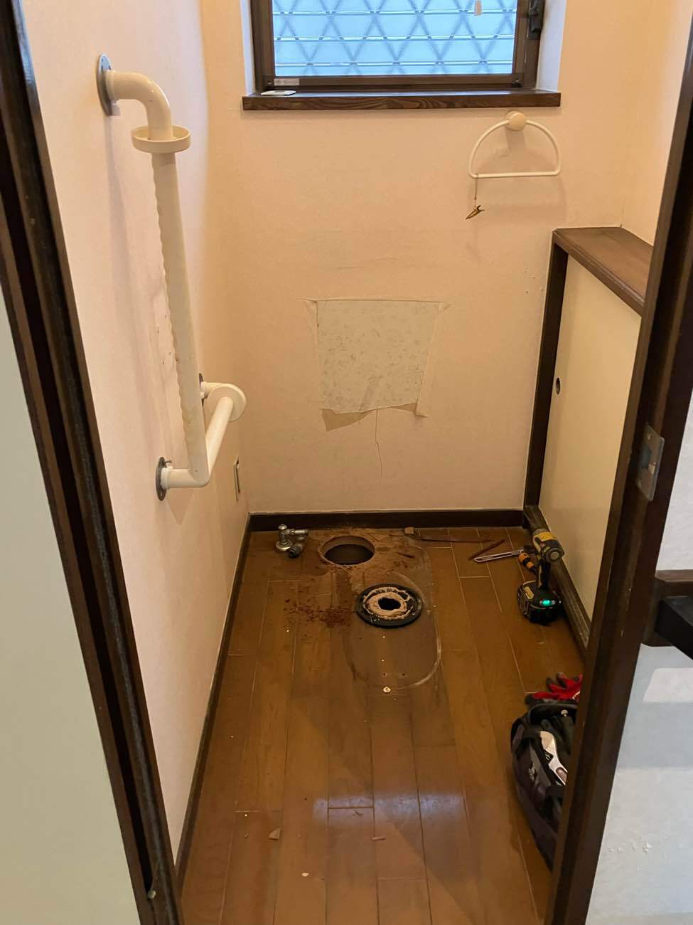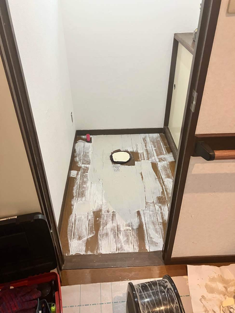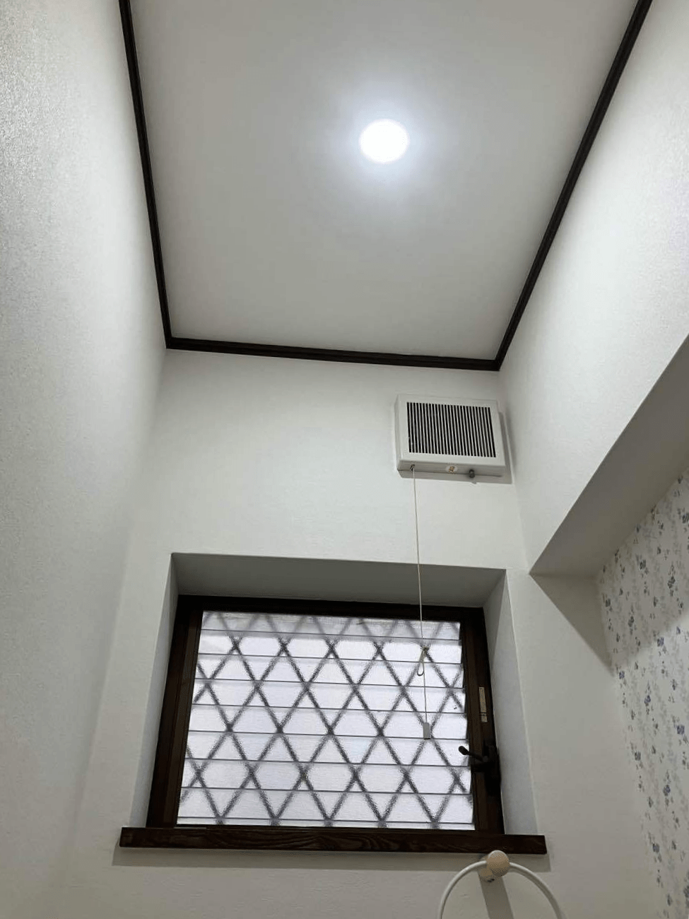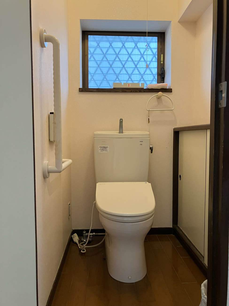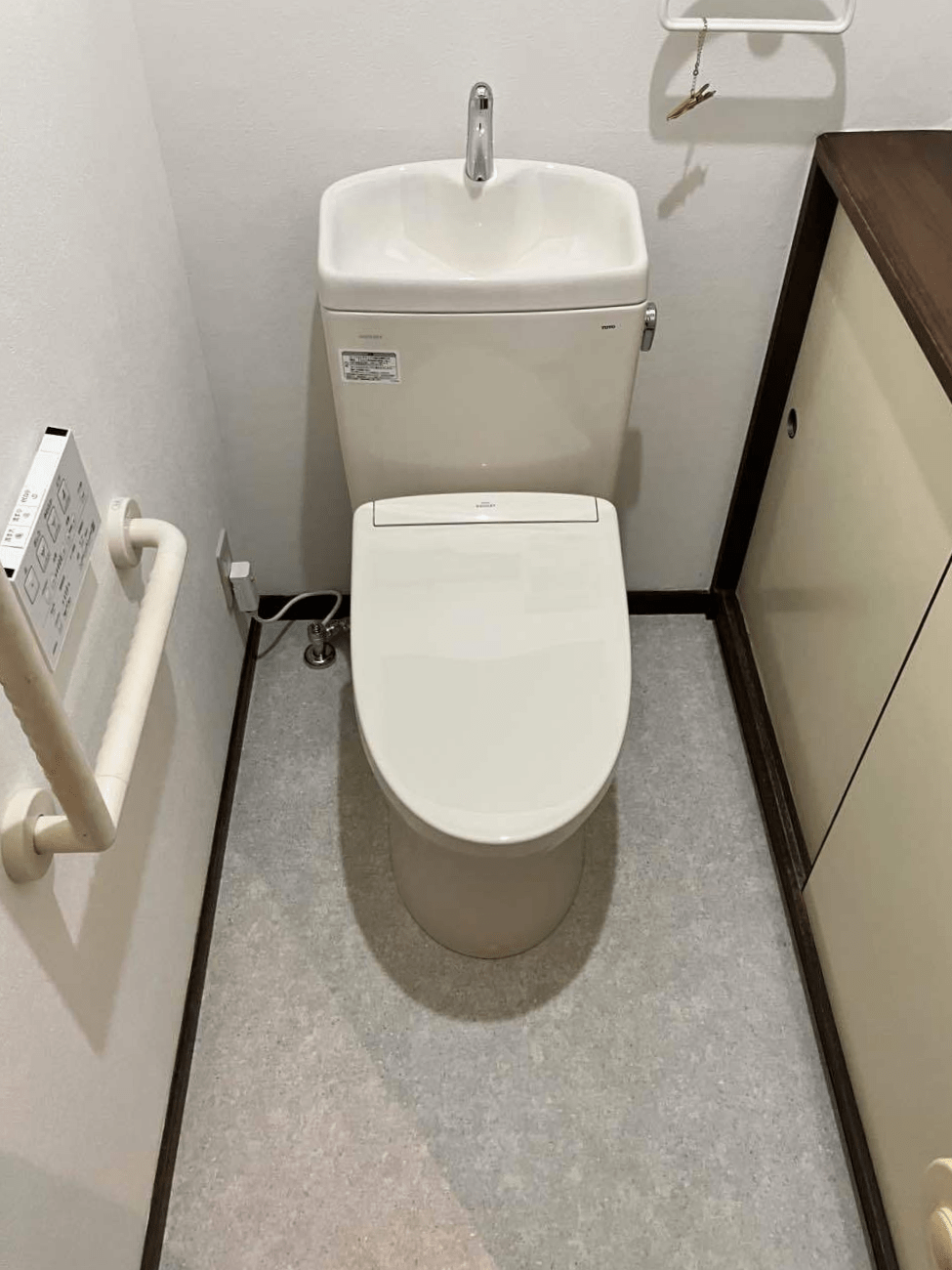 きっかけは、ウォシュレットの故障でした。15年ほど使用されていたこともあり、「せっかくならトイレ本体もクロスも新しくして、空間をスッキリさせたい」とご相談いただきました。今回のリフォームでは、トイレだけでなく、フローリングの上からクッションフロアの上張りも行いました。水回りにより適した素材を使用することで、お手入れもしやすく、より快適に使える空間になりました。さらに、壁の凹凸を活かして青いお花柄のアクセントクロスを採用。シンプルな白基調に映えるクロスなので、毎日使うトイレ空間の雰囲気も明るく華やかに仕上がりました。