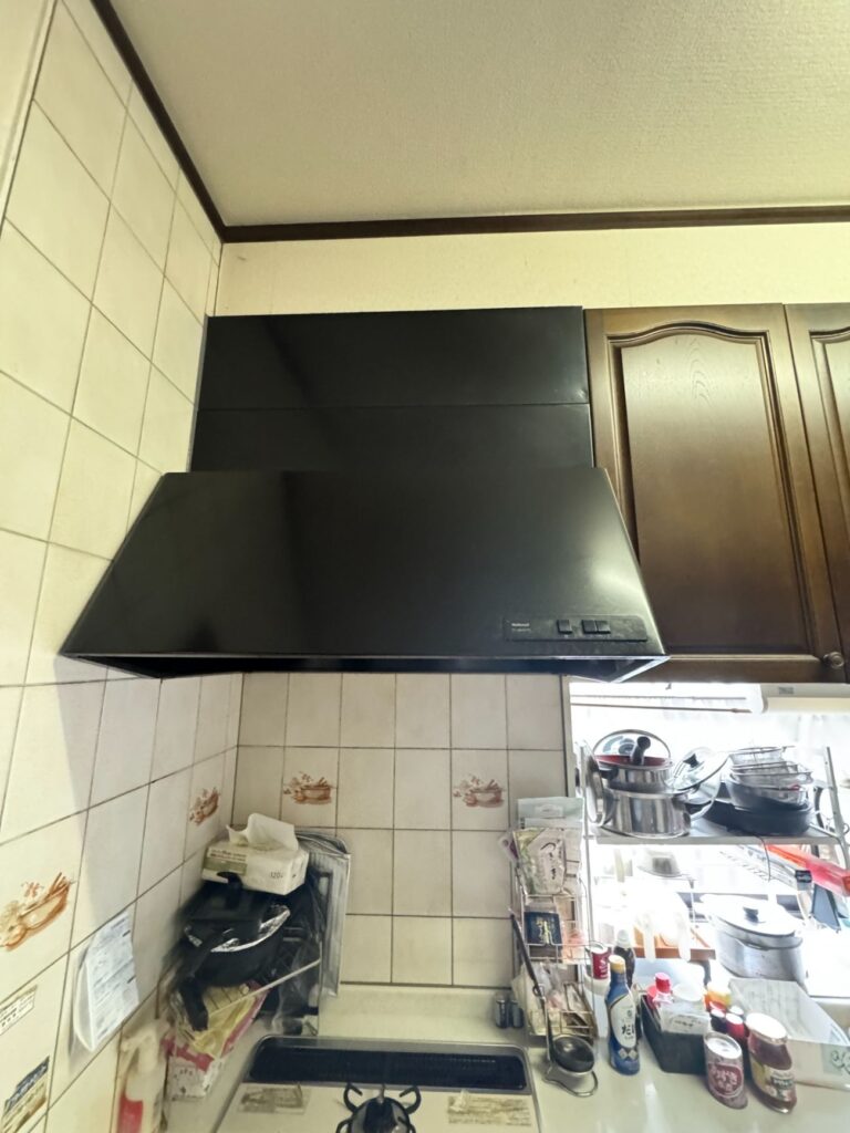 あわせて、掃除が大変だった従来の換気扇を最新のレンジフードに交換。羽根の取り外しが不要で、お手入れもぐっと楽になりました。