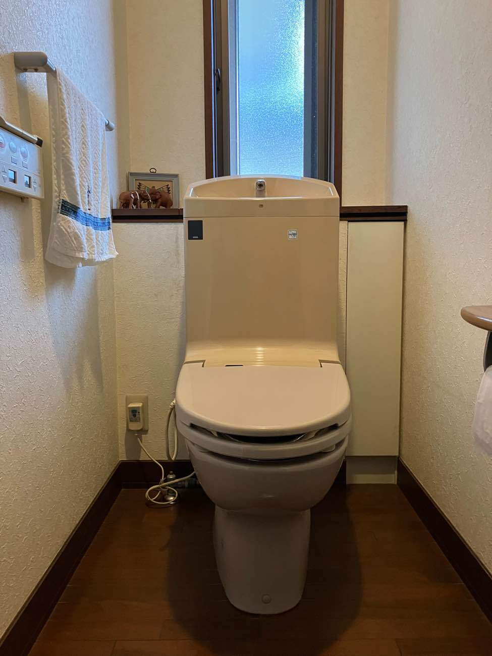 リモコンの故障をきっかけに、年数の経ったトイレの入れ替えをご検討され、現在ご使用の機種と同じ機種をご希望でした。見た目はほとんど変わりませんが、デザインがよりすっきりし、便器のくぼみもなくなったことで掃除もしやすくアップデートされています。「今後も家電など何かあれば相談したい」と嬉しいお言葉をいただきました。