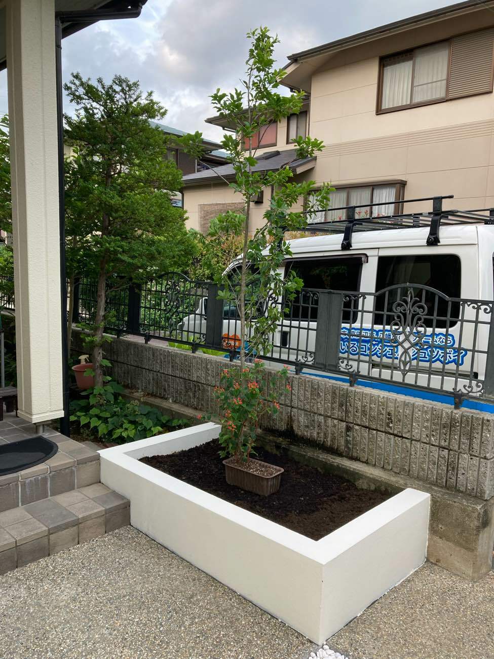 やるならかっこよくしたいという想いも聞いていましたので、かっこいい仕上がりになるよう、デザインや色合い、組み合わせ、商品など選びプランニングしました。また、これからのことを考え、将来に備えたスロープや花壇なども新たに作ることも、ご提案をさせていただきました。