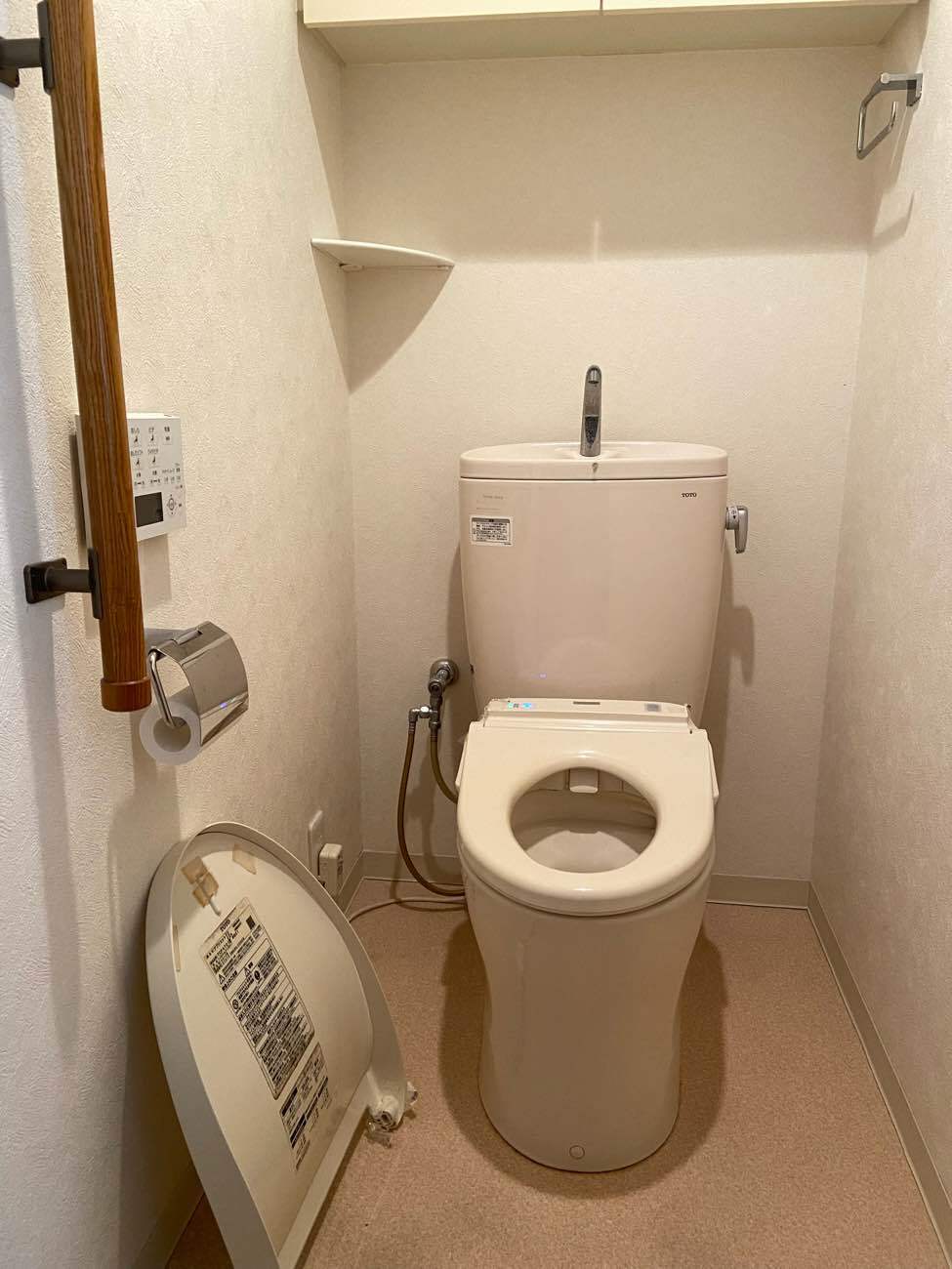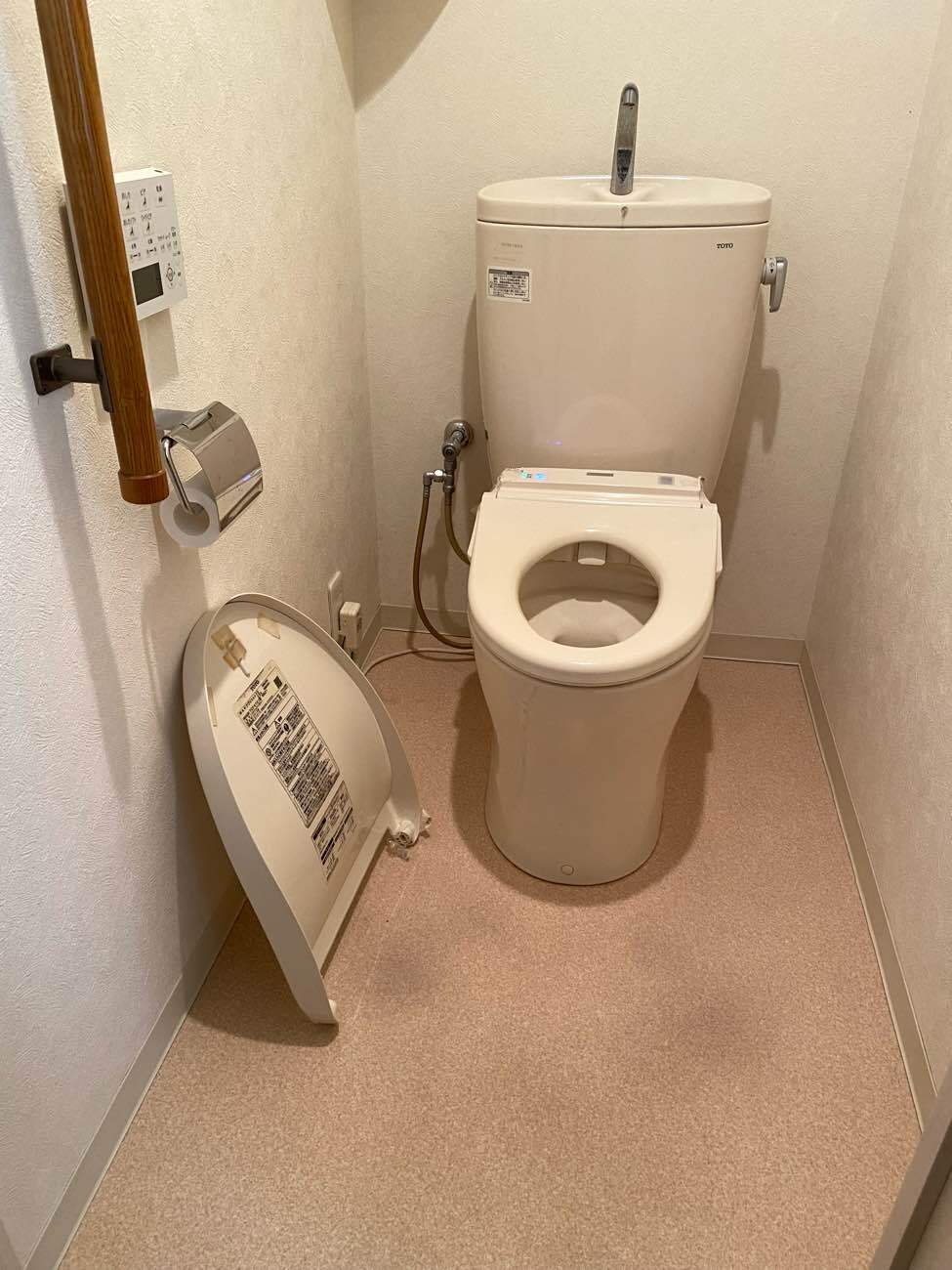 確認すると便座のみの不具合でタンクや便器等はまだ使えている状態。ただ、使用年数13年という年数的に今後タンク等で不具合が起きる可能性があることもお伝えしました。トイレの寿命が15年であることをあまりご存じない方もいらっしゃるので、そのことはいつもお伝えするようにしています。「寿命に近づいているなら今後も不安だし、せっかくなら一気にリフォームしたいと思っていたので」と便座だけでなく、トイレ全体の入替となりました。