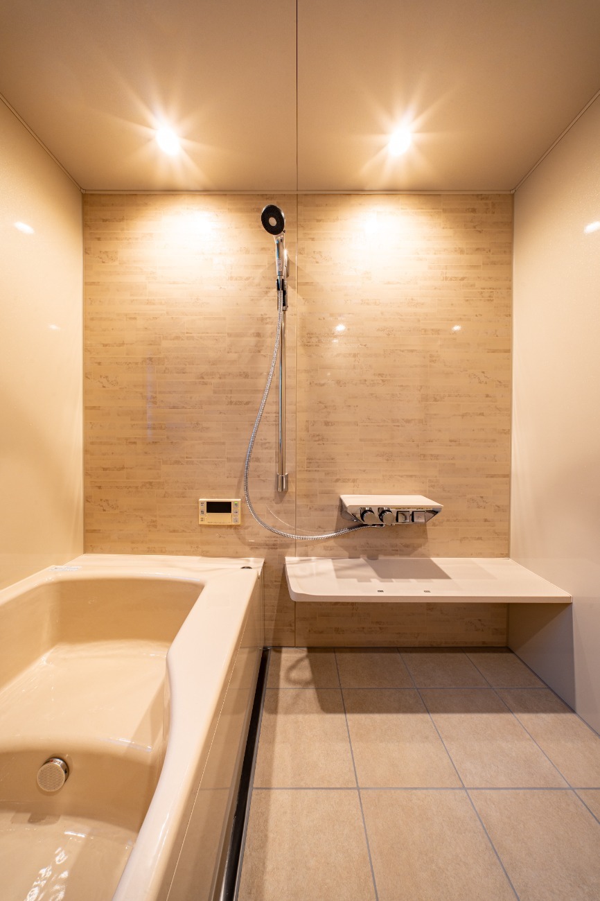 築年数的に水廻り全体のリフォームを検討されていたお客さま。全体的にお掃除しやすいものがいいとのご希望と、せっかくリフォームするなら今よりいいものをつけたい!と浴室は、ホーロー浴槽が特徴的なタカラスタンダードのプレデンシアを選ばれました。浴室の床や壁、浴槽の色などは全体的にベージュにされ統一感を出しました。