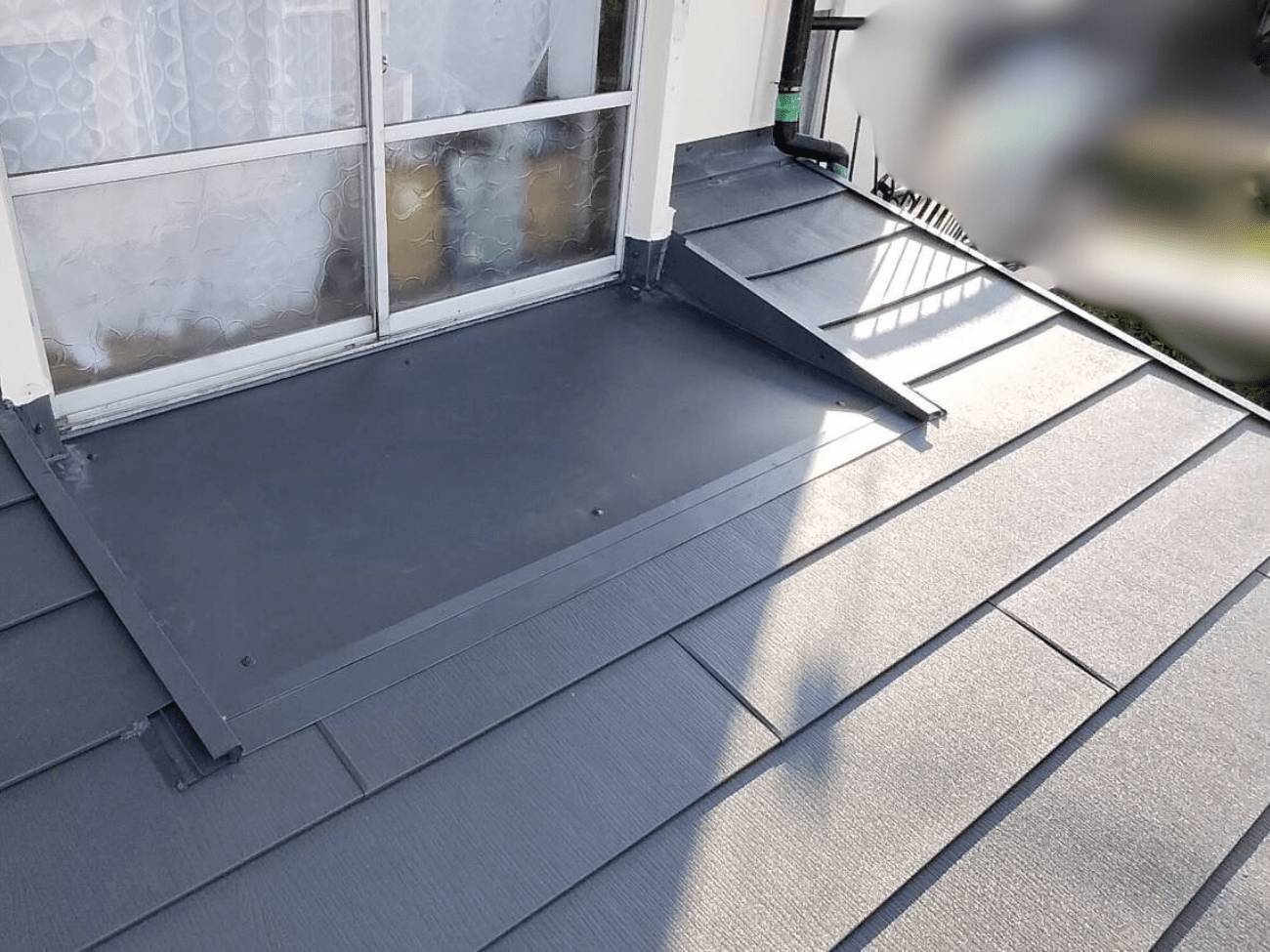そこで下屋根は撤去せず、負担を抑えられるカバー工法で施工しました。下屋根のみの工事に絞り、必要な範囲で対応。あわせて繋ぎ目部分はシール工事を行い防水性を確保し、雨漏れの心配がない住まいになりました。
