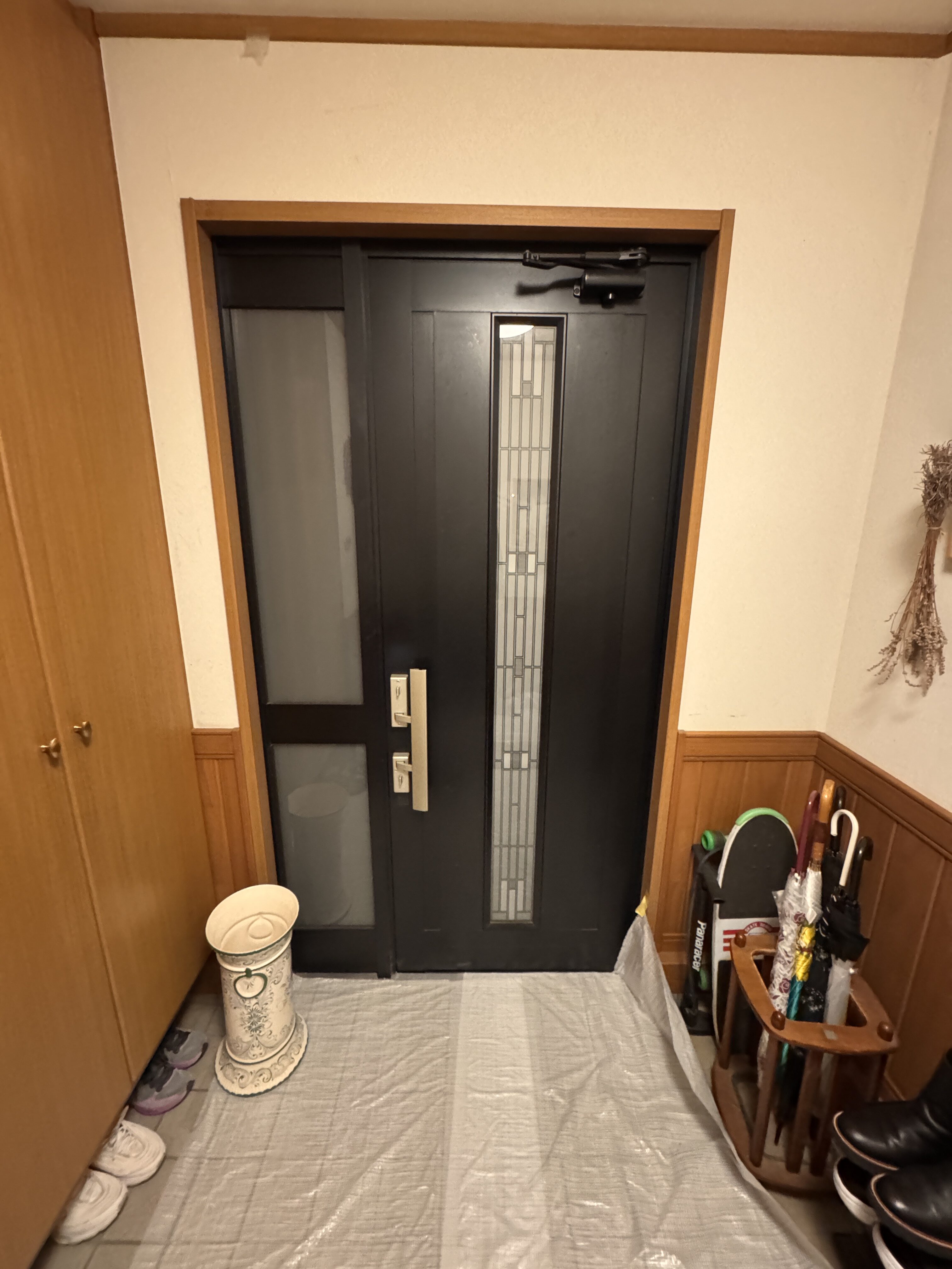 外壁塗装工事が完了し、きれいになったお住まいの外観をご覧になったお客様から「玄関ドアも新しくしたい」とご相談をいただきました。