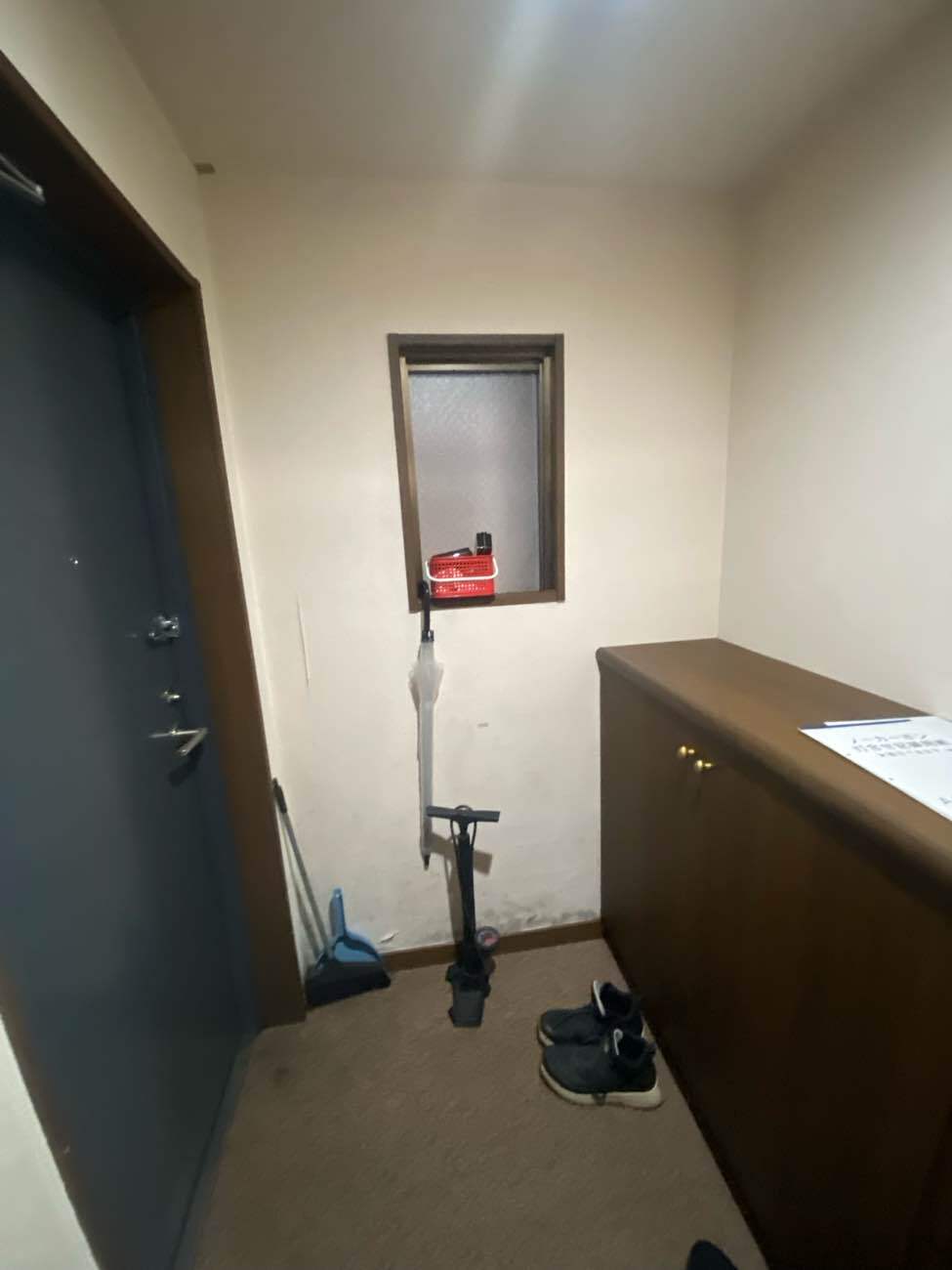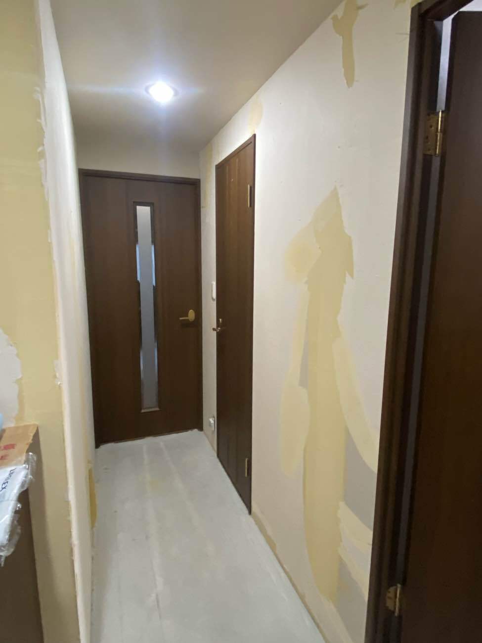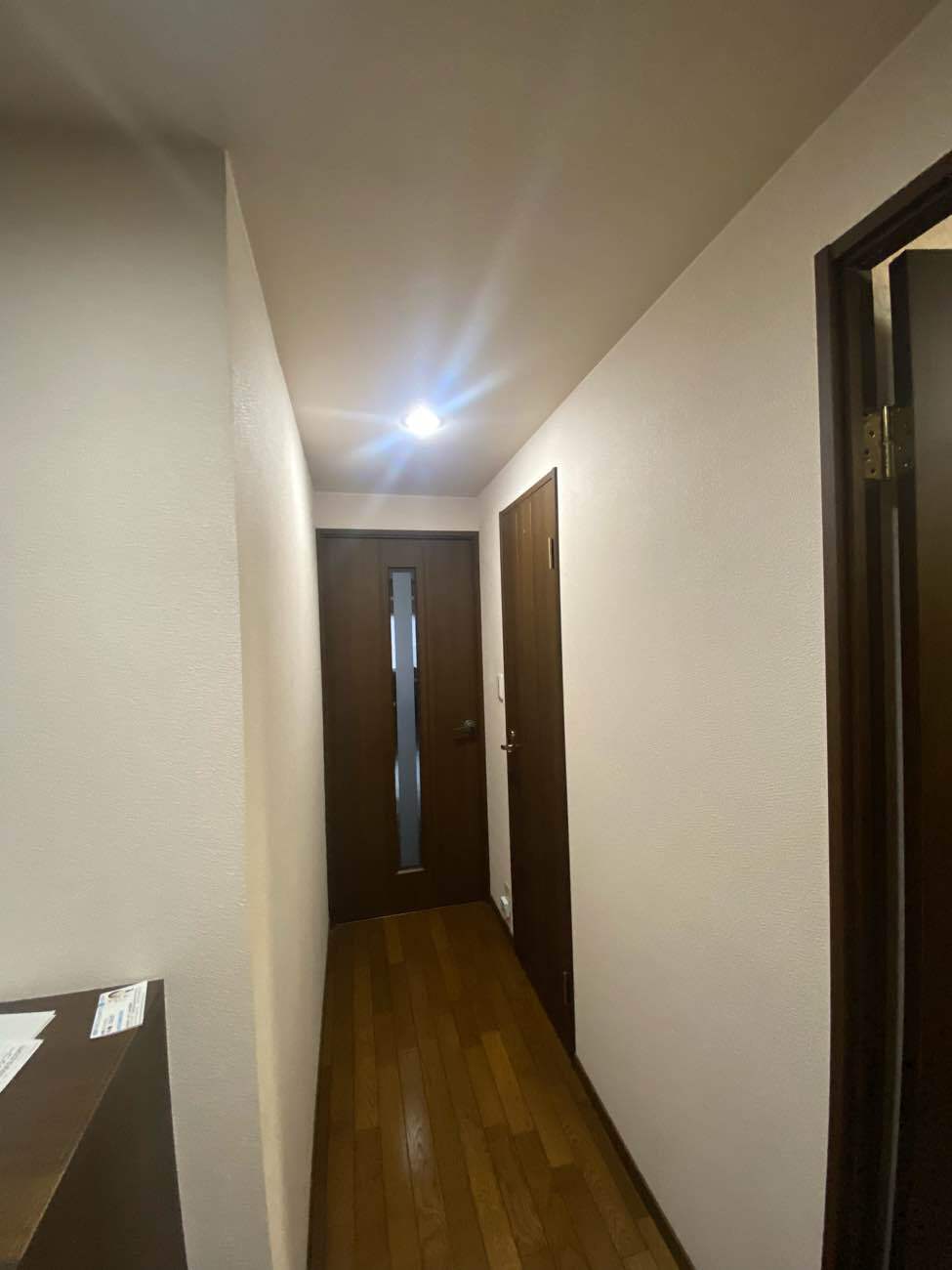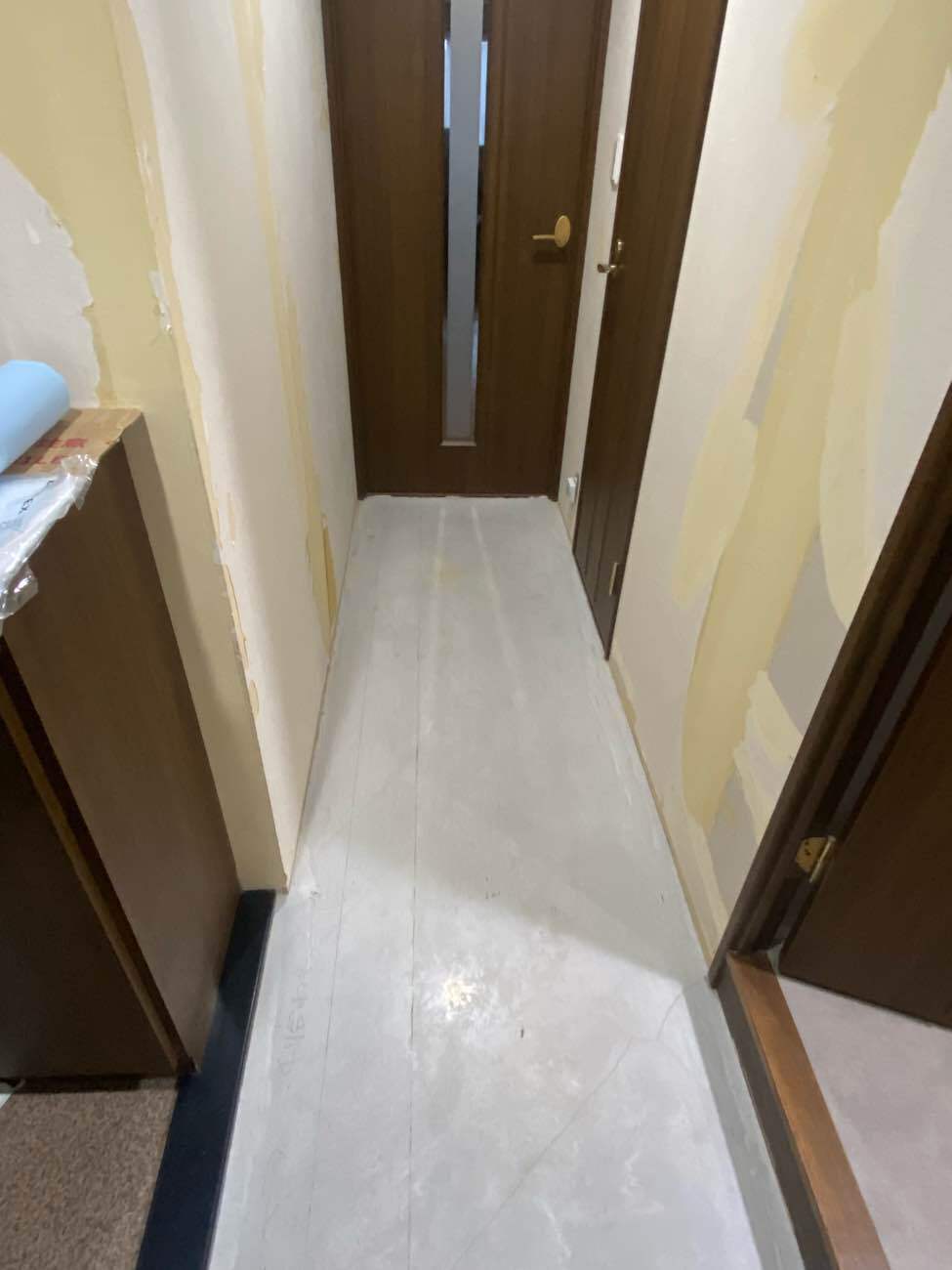 玄関まわりは、FIX窓の付近が特に結露がひどく、窓枠にも結露が発生している状態でした。FIX窓ですので、開け閉めは普段されておらず、採光のための窓でしたが、採光よりも結露をなくしてカビを防ぎたいという思いの方が強くお持ちだったため、思いきって窓をなくすことに!断熱材を壁の中に仕込み、壁を作ることで結露が発生しにくい玄関回りとなりました。また、玄関のタイルも古くなってきて、廊下の床も今回貼り替えをするため、併せて玄関タイルも貼り替えをしました。