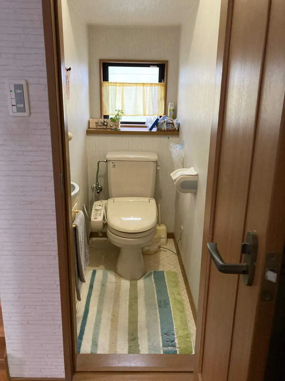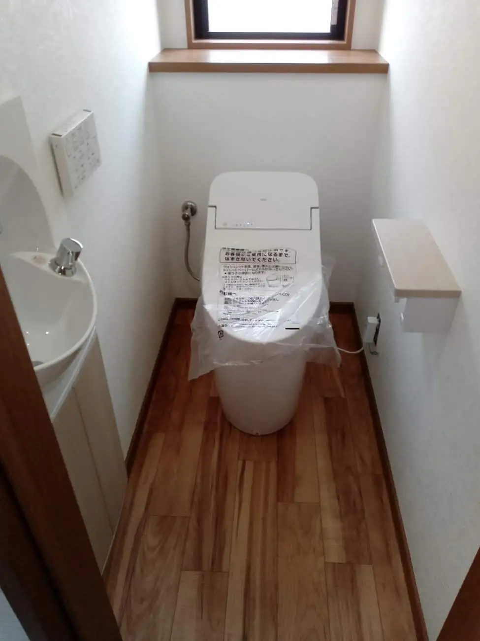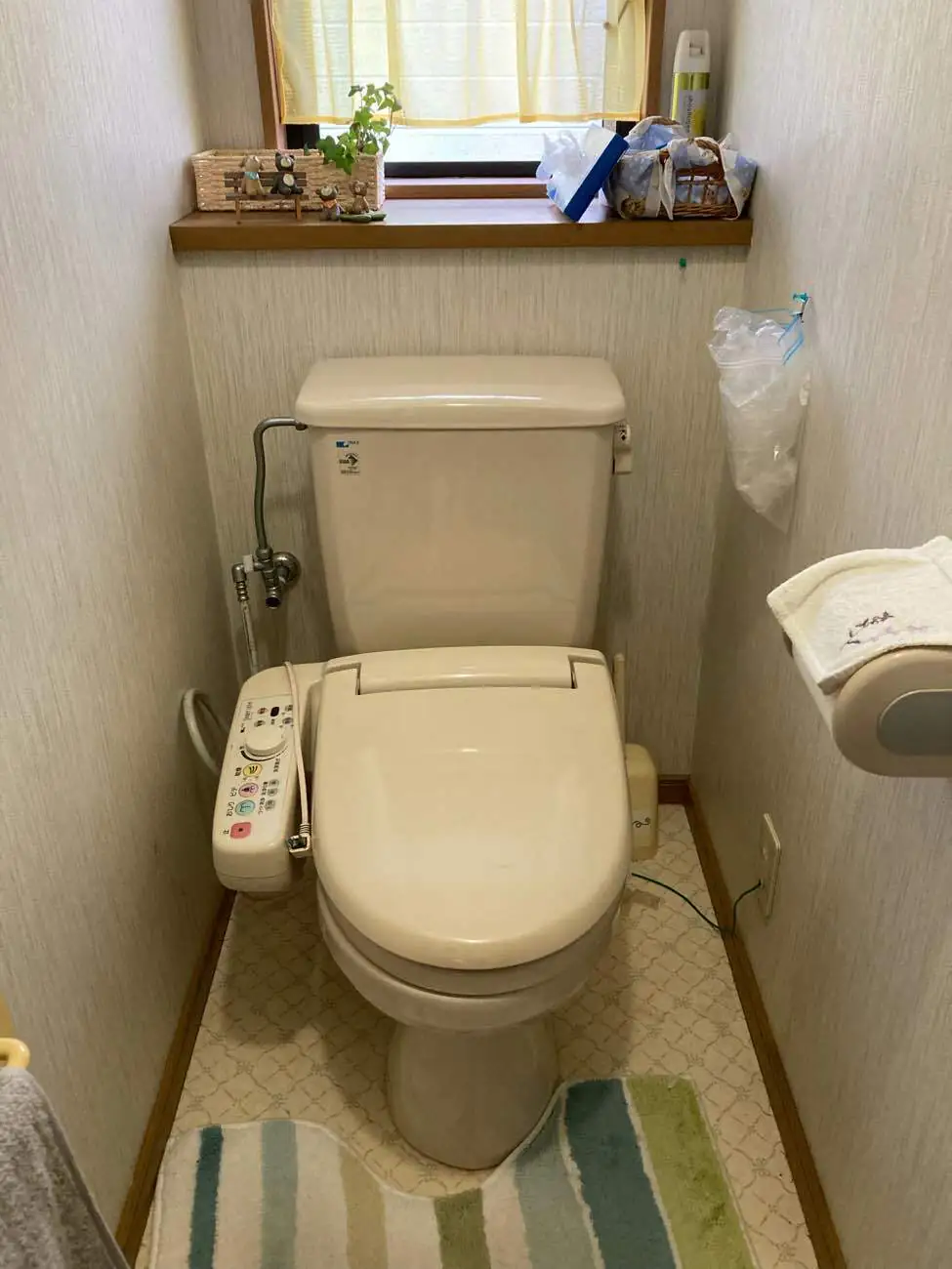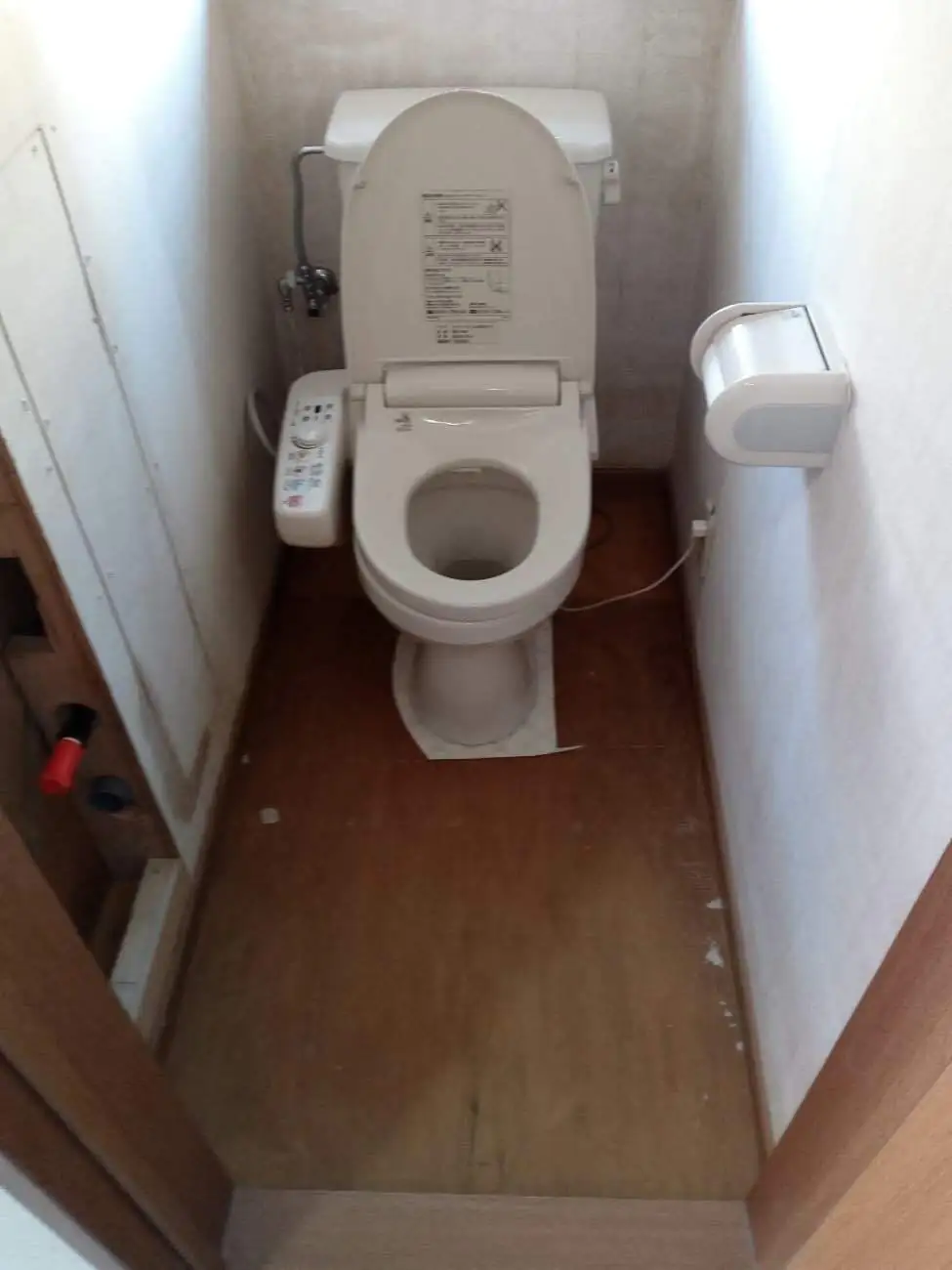 温水洗浄便座が壊れていて使えない状態。自動洗浄のトイレが良い。別についている手洗器も交換したい。壁、天井のクロスと床のクッションフロアの貼替もしたい。