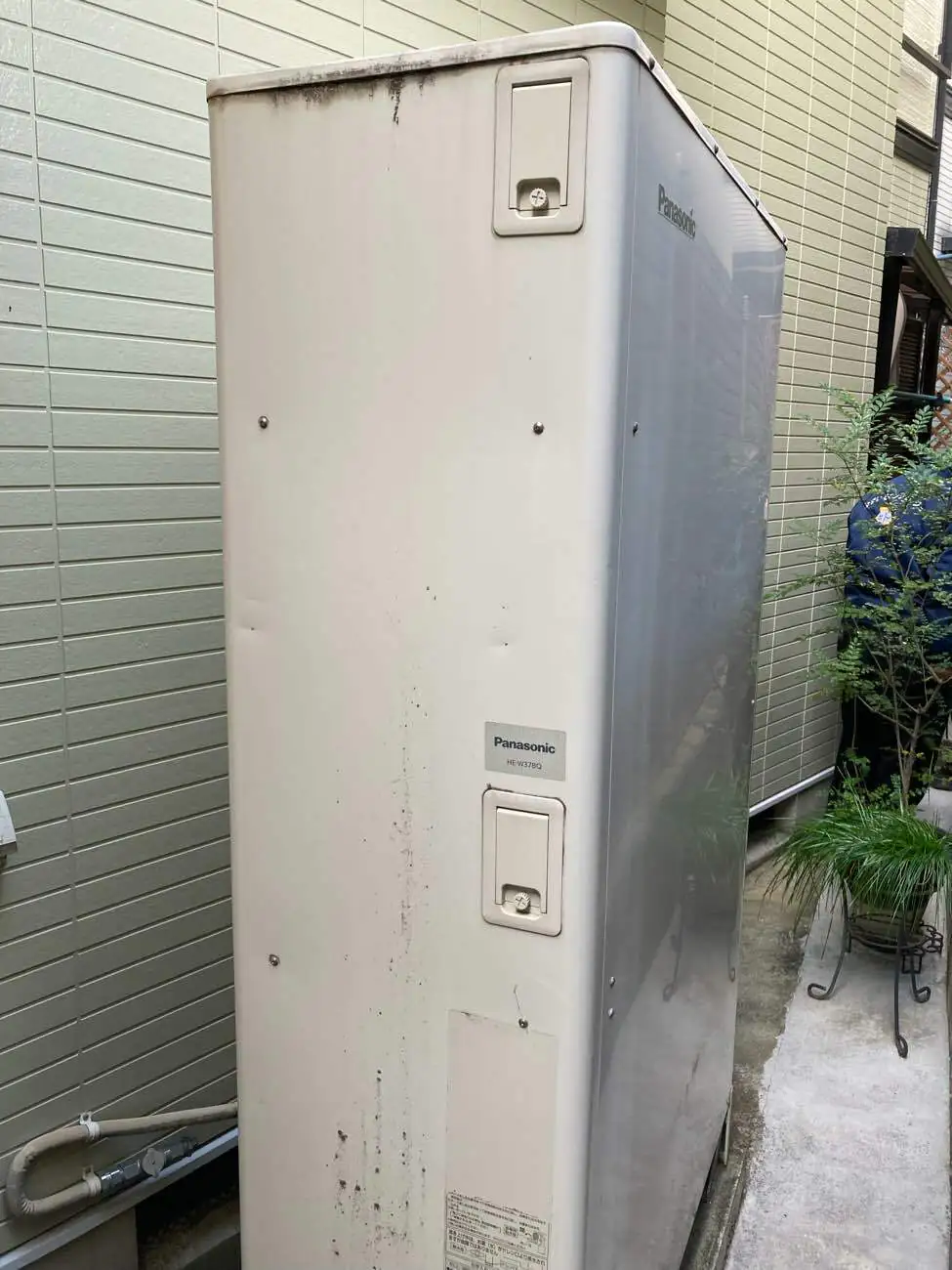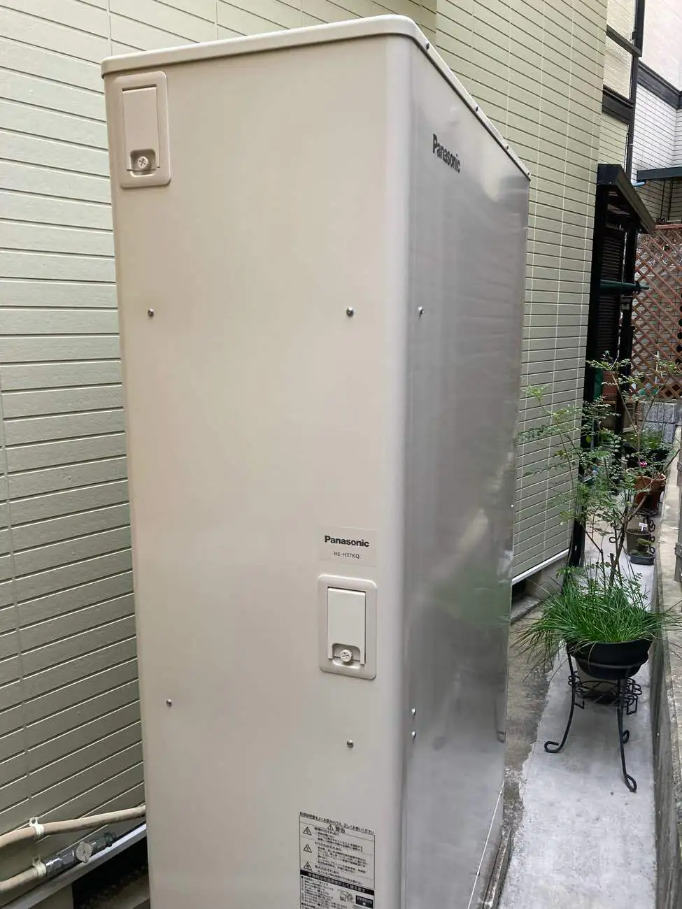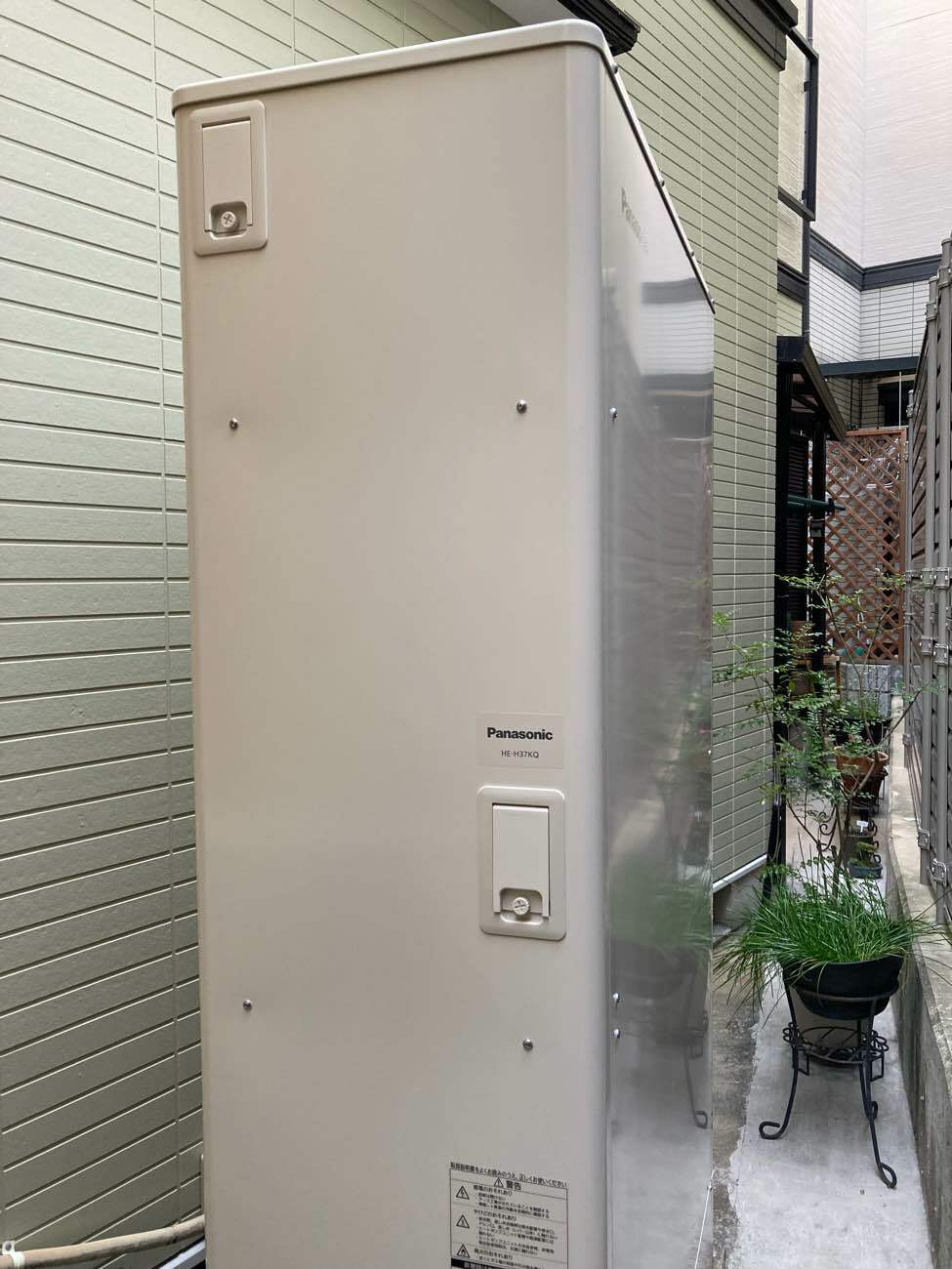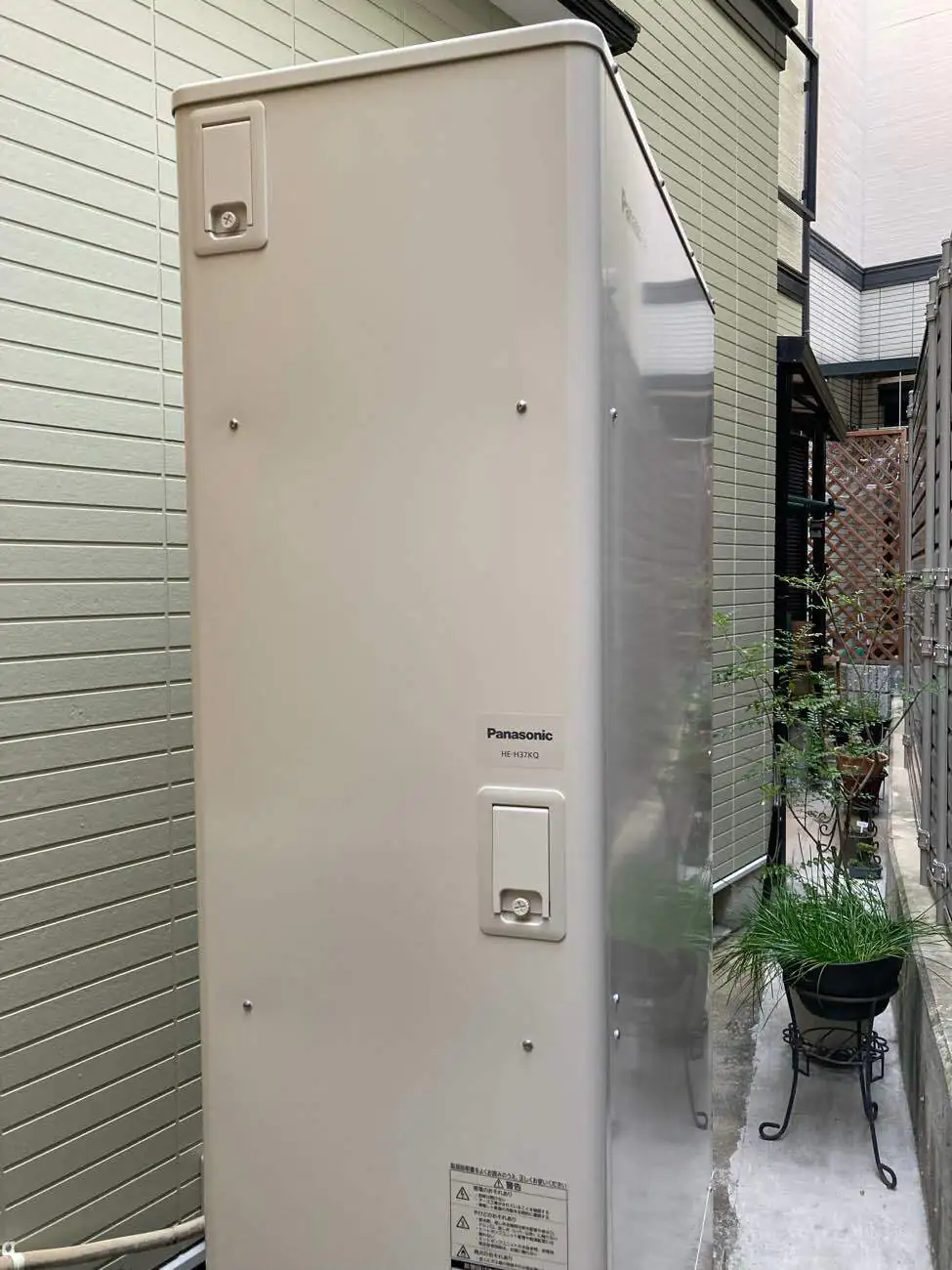 お話を聞かせていただき、現在お使いのエコキュートと同じ場所に設置可能のパナソニックエコキュートHシリーズ370L薄型をご提案させていただきました。薄型のエコキュートは角型のエコキュートに比べて奥行きが短いため、広いスペースを確保できない場所でも設置することが可能です(幅は角型のエコキュートよりも長くなります)。