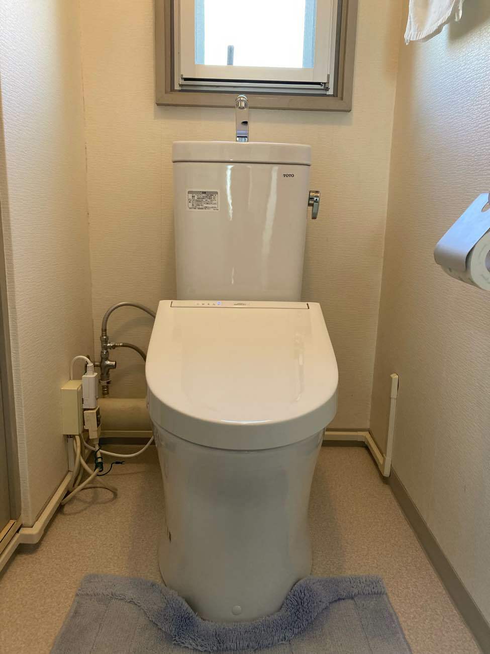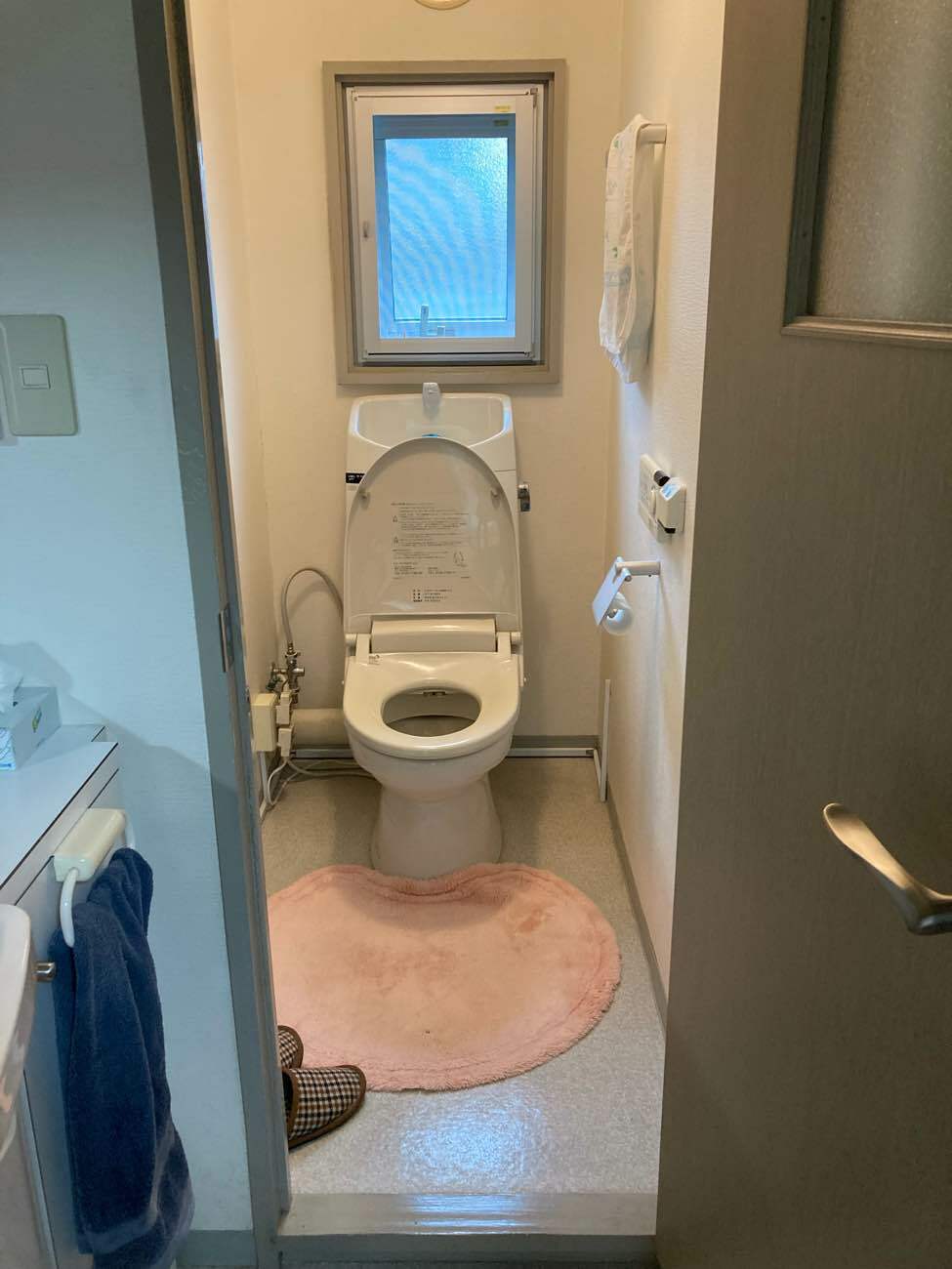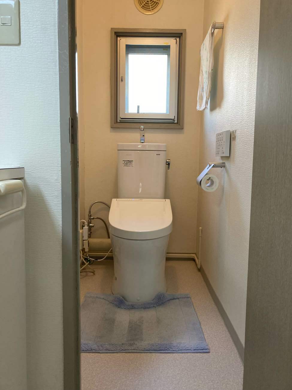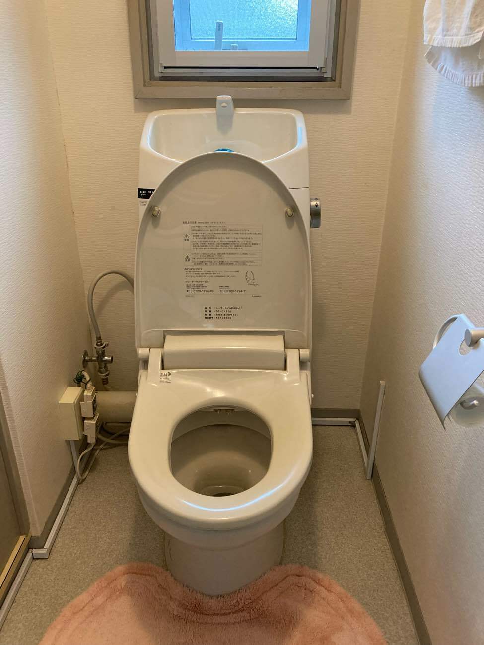 現在お使いのトイレの排水芯に合う組み合わせトイレのTOTOピュアレストMRと、温水洗浄便座はリモコン便器洗浄付タイプのTOTOウォシュレットS1Aをご提案させていただきました。トイレの空間をスッキリきれいにしたいとのことでしたので、床のクッションフロアの張替もご提案いたしました。トイレの入替をすると、既存のトイレの跡が残ってしまうので、クッションフロアの張替も一緒にされることをおすすめしています。