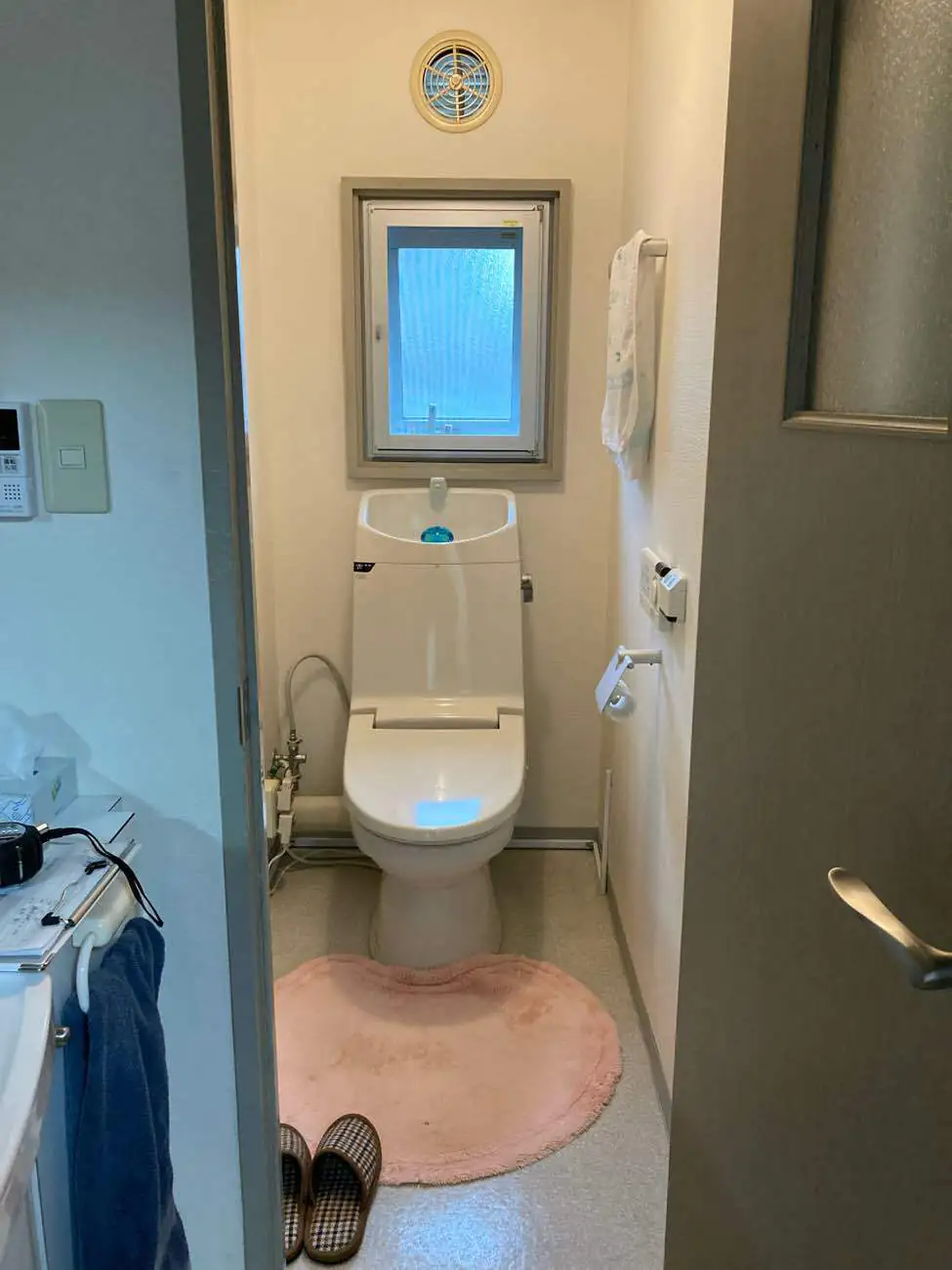 お手入れのしやすい清潔感のあるトイレになりました。リモコンも一つになりましたので、壁もスッキリとしています。クッションフロアの色柄は、隣の洗面所のクッションフロアと似ているものをお選びいただいたので、トイレだけではなく周囲のお部屋とも統一感のある空間になりました。