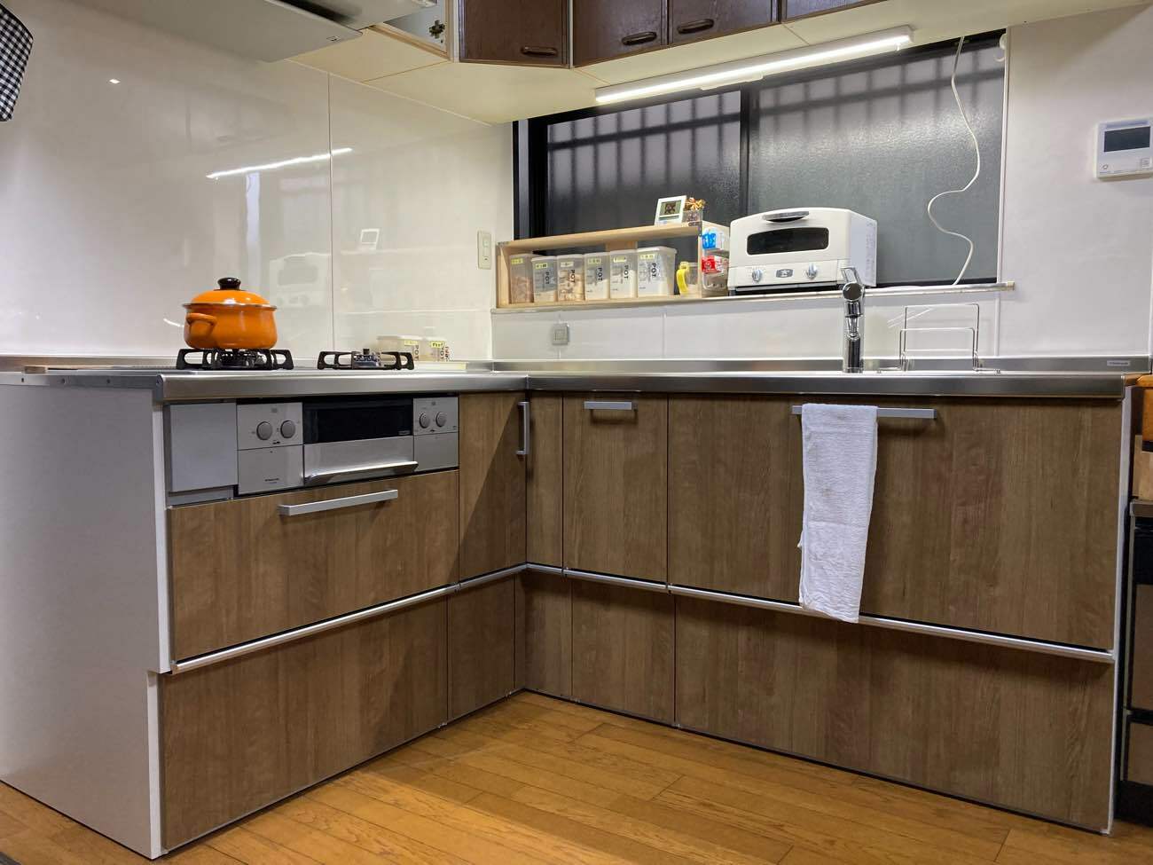 ご希望をお伺いしてプランを作成させていただきましたが、カタログやプランだけでは実際の使い勝手がわかりにくいと思いましたので、ショールームで実際に見ていただき、商品の比較をしていただきました。素材や収納量などを比較して見ていただけたため、楽しみながら納得して商品をお選びいただくことができました。工事を終え「やっぱり実際にショールームに見に行かないとわからない。落ち着いた印象のキッチンになったし、ショールームで見たものよりもいいものに見えるし良かった!」と喜んでいただけました。流し元灯も新しいものにして、より明るくスッキリとした印象になりました。正面にキッチンパネルを貼りましたので、汚れに強くお手入れのしやすいキッチンになっています。使いやすくお手入れのしやすいキッチンになり、大変喜んでいただけました。