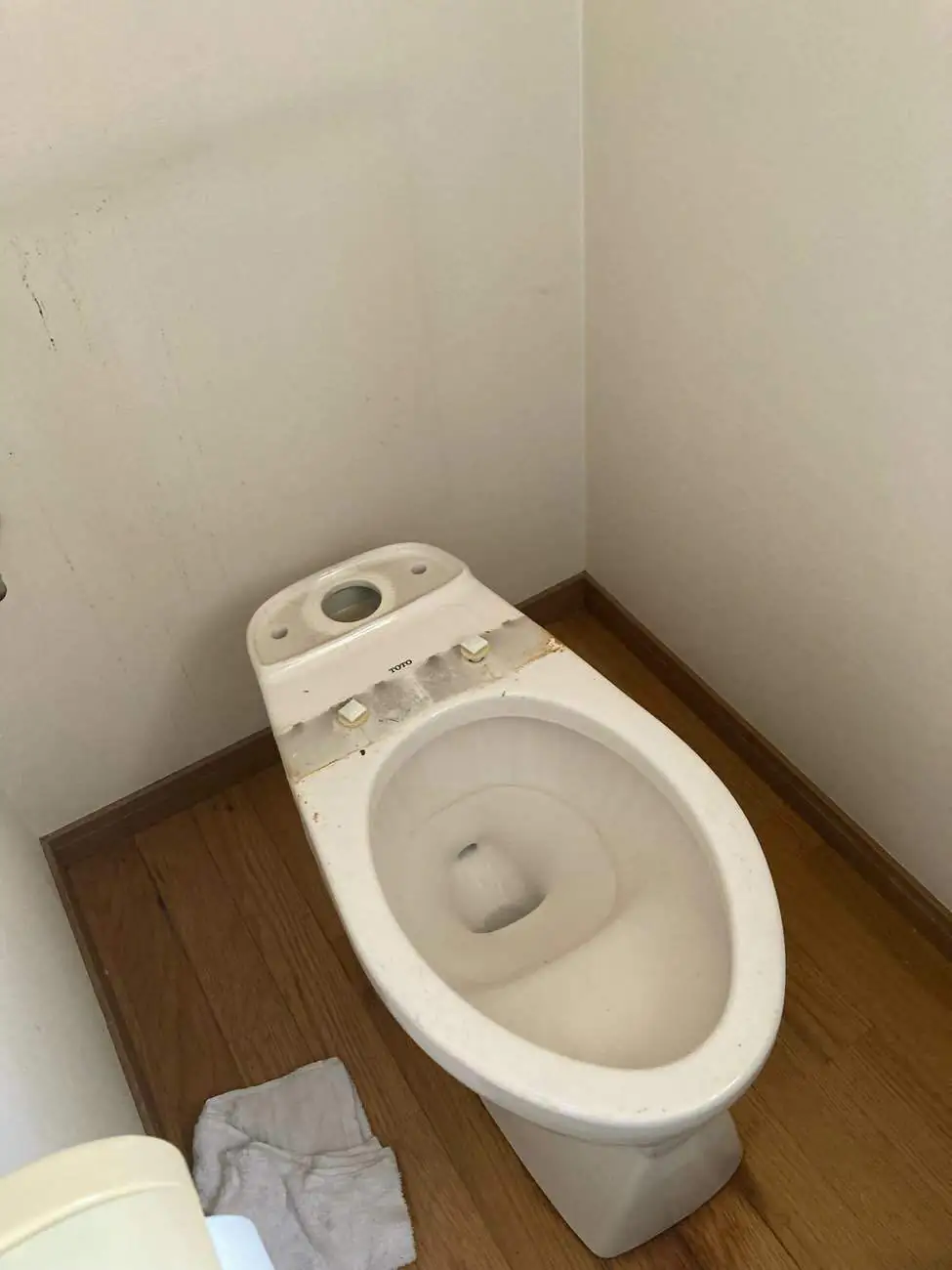 28年間丁寧にお使いいただいた2Fトイレ。1Fトイレのつまり解消作業中会所を開けたことで水漏れが発覚しました。交換時期を大幅に過ぎていたため交換することに。