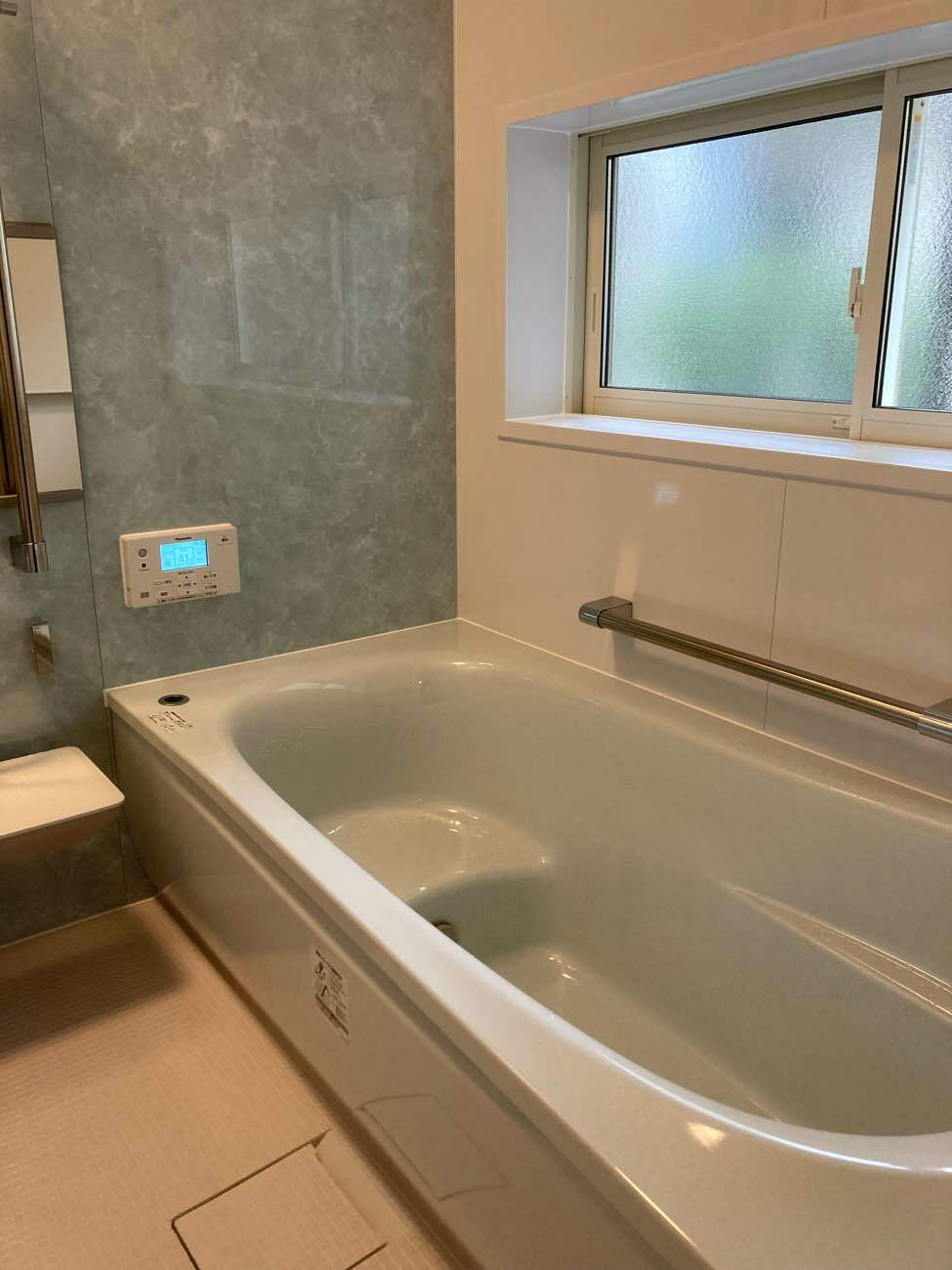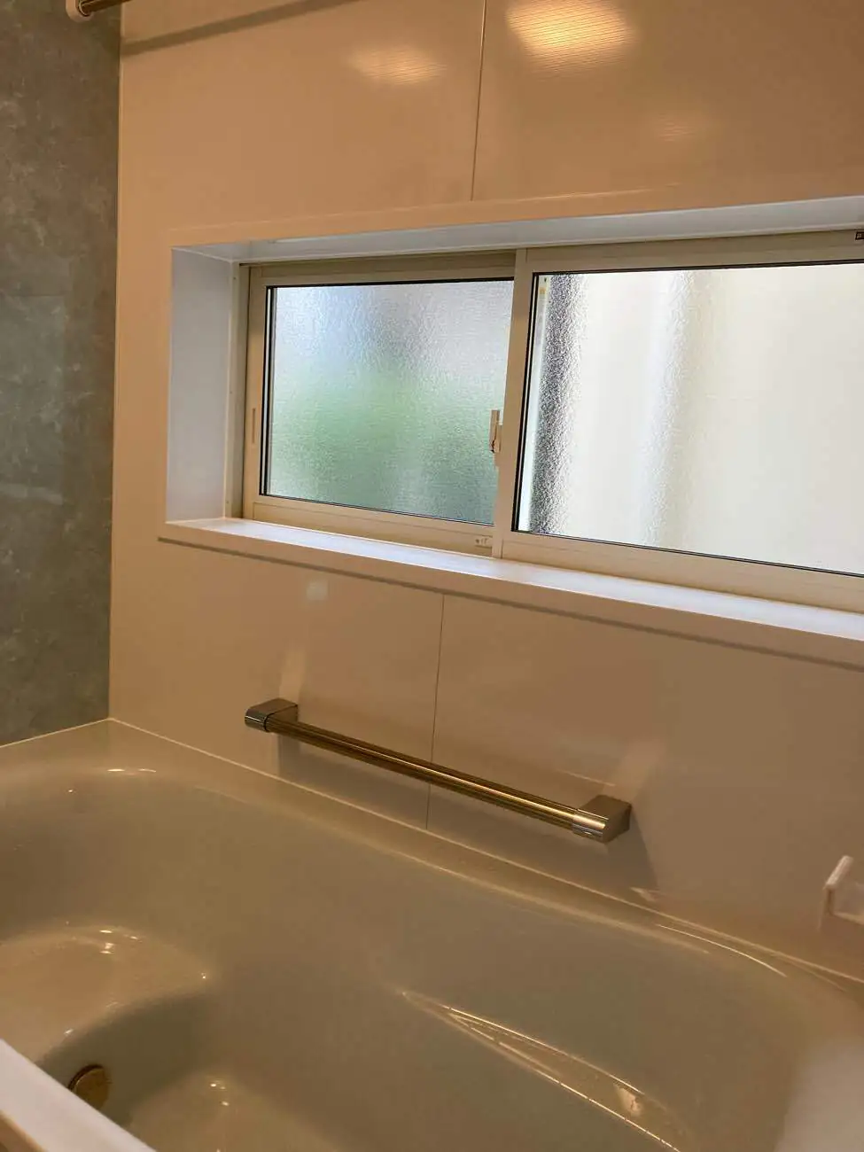 浴室はカタログだけではなく、ショールームにお施主様と一緒に行き、ご希望を選定していただきました。ユニットバスと壁との間に断熱材を入れ、窓は寒さとまわりを気にせず入浴できるように、幅と高さをお施主様と確認をして大きさを小さくし、外側には目隠しを取付するご提案をさせていただきました。