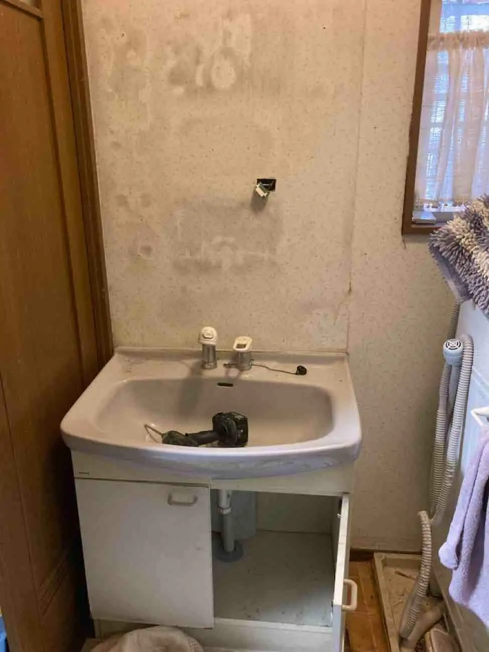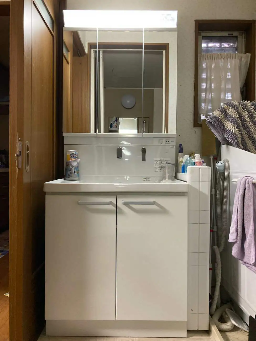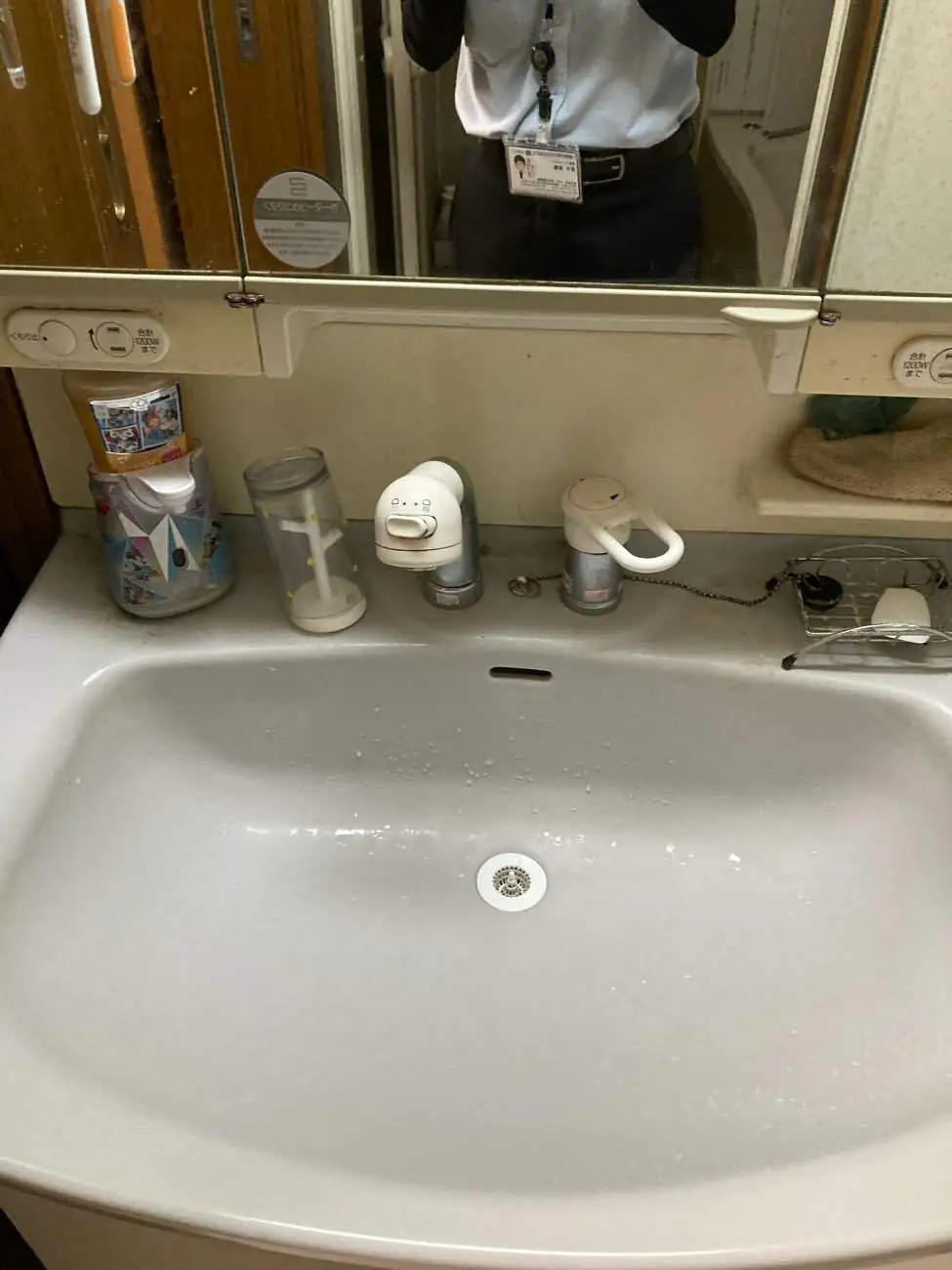 水栓のハンドル部分がぐらぐらしているので水栓を取替えたいとのご希望でしたが、使用年数をお伺いすると取替に最適な年数であったためそのことをお伝えし、洗面台ごとの取替になりました。