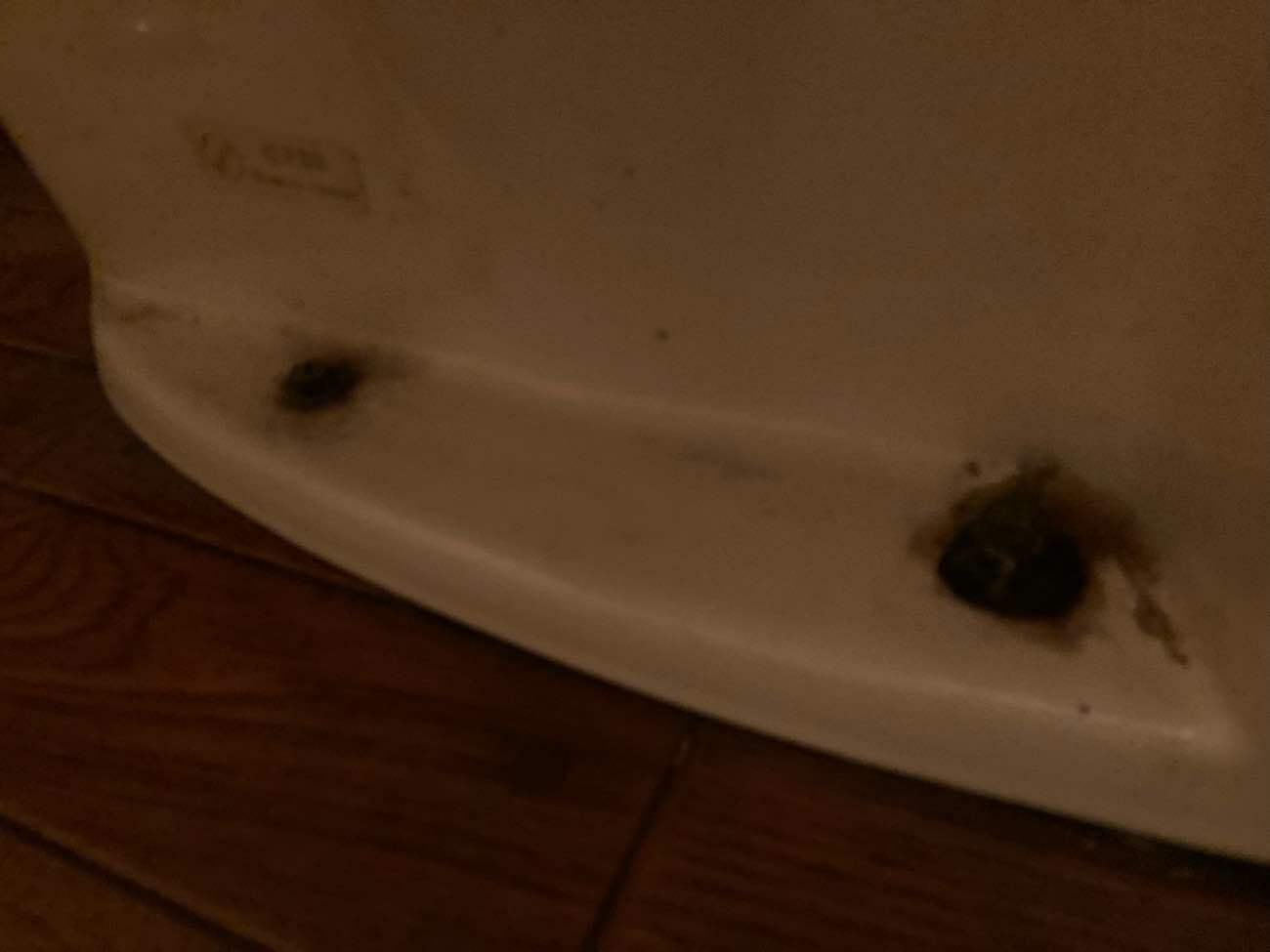 洗浄便座が使えなくなり洗浄便座の取替をしたいとのことでしたが、お伺いしてみるとボルトがサビついていたりと劣化しているようでしたので、実際に年数の経った便器にヒビが入り水漏れなどしてしまうリスクがあることをご説明。