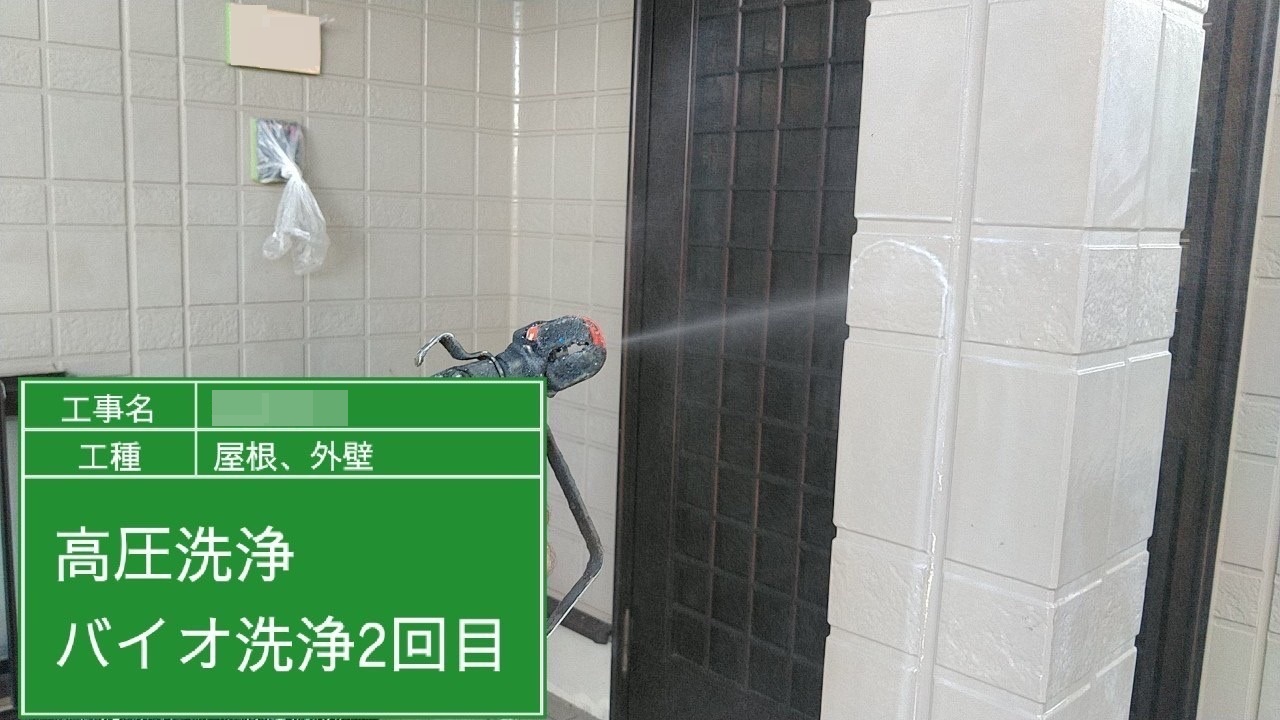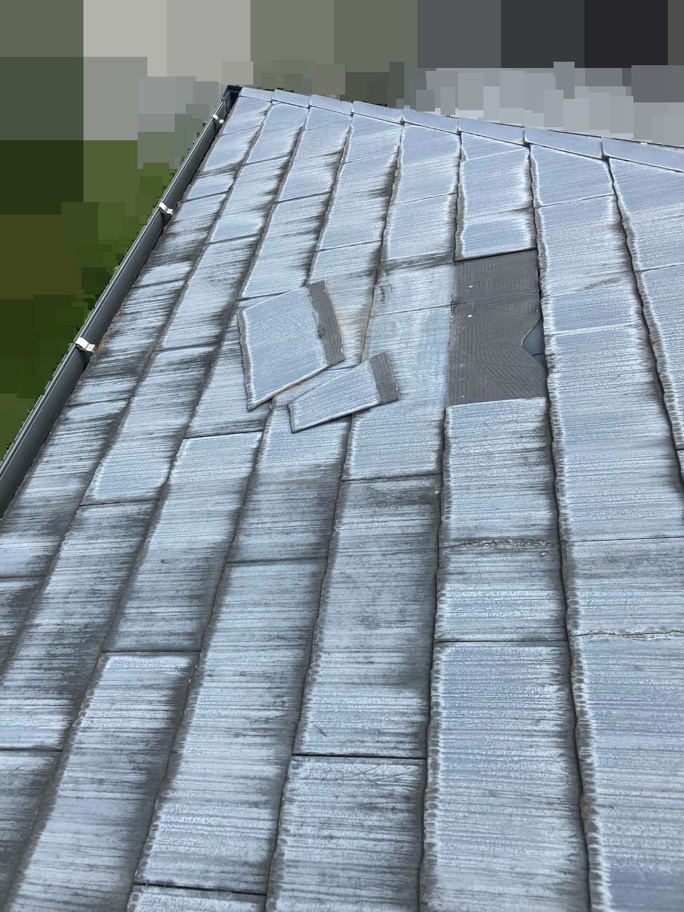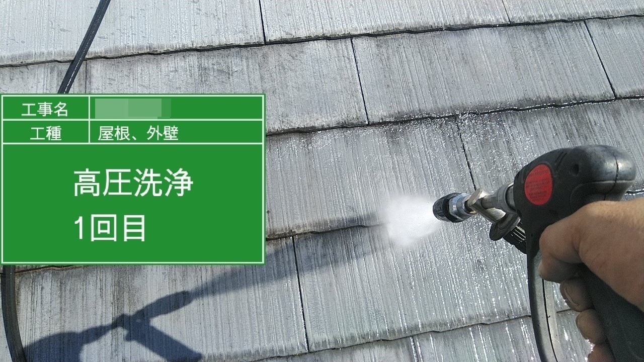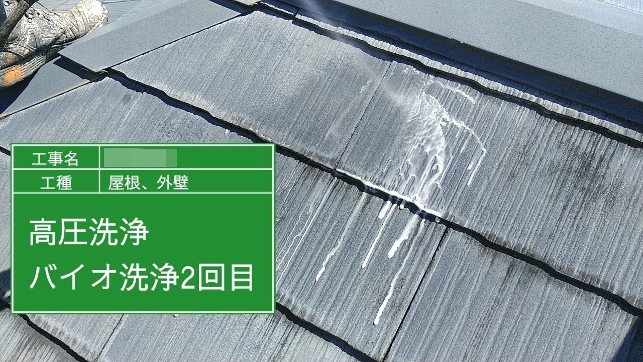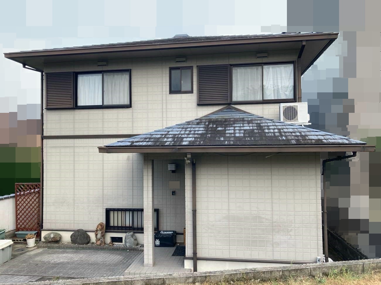 築30年。前回塗装をされてから18年経過し、屋根は色褪せ、苔もたくさん。外壁も白い粉がつくチョーキングも発生しており、水を弾きにくい状態でした。特に北面にある玄関上の屋根。こちらは色褪せや苔汚れがたくさんあり、目立つとお客様は気にされていました。